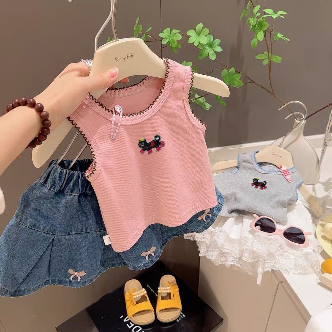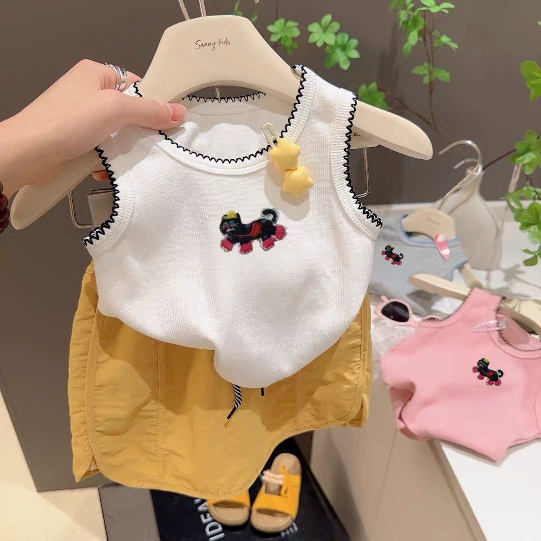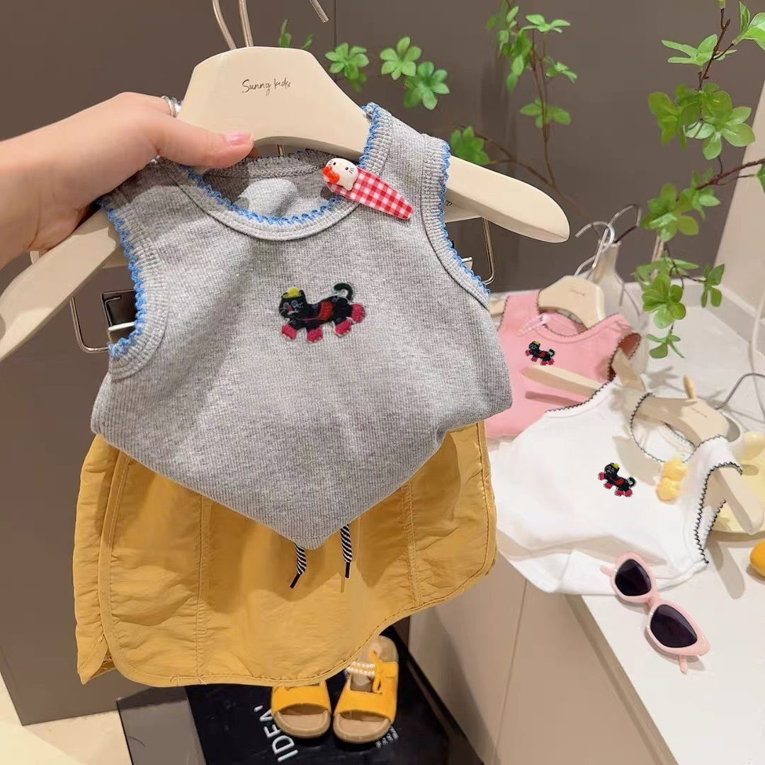 여자 달콤한 수 놓은 만화 강아지 민소매 티셔츠 2025 여름 새로운 스타일 어린이 스타일 다목적 느슨한 조끼스토어 가기