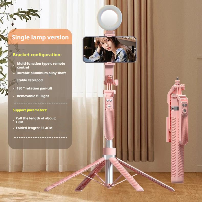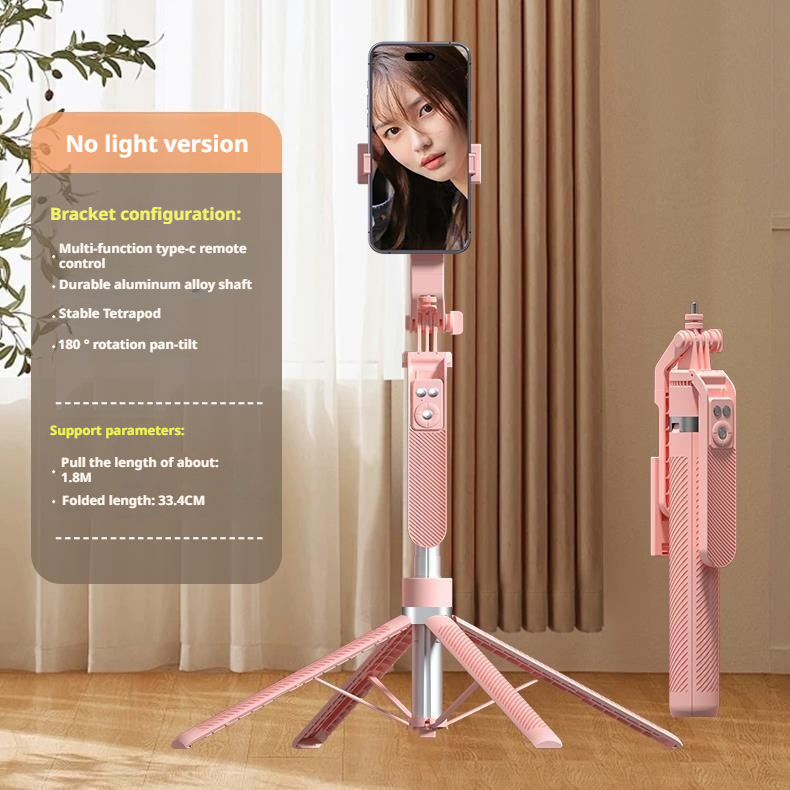 • A14 라이트리스 버전 핑크 [ 1.8m 알루미늄 합금 4다리 삼각대 셀카봉 + Douyin 충전 리모컨 ]