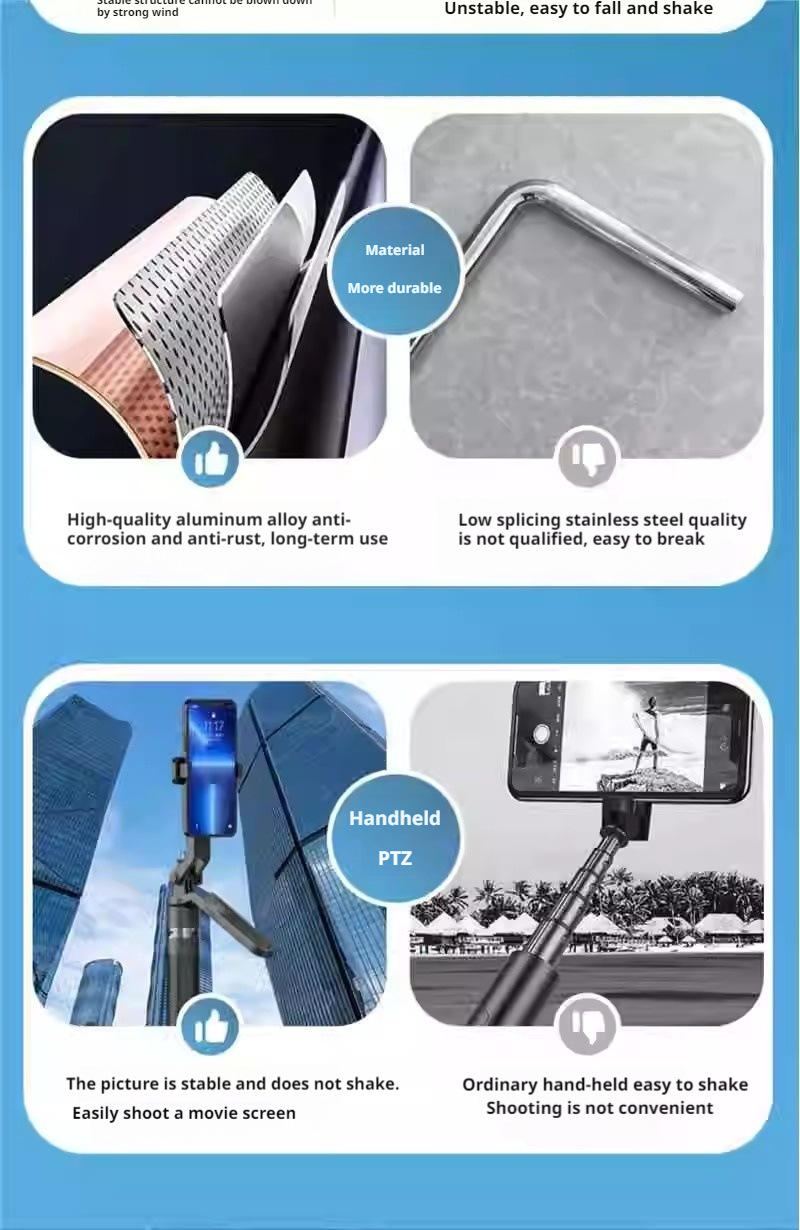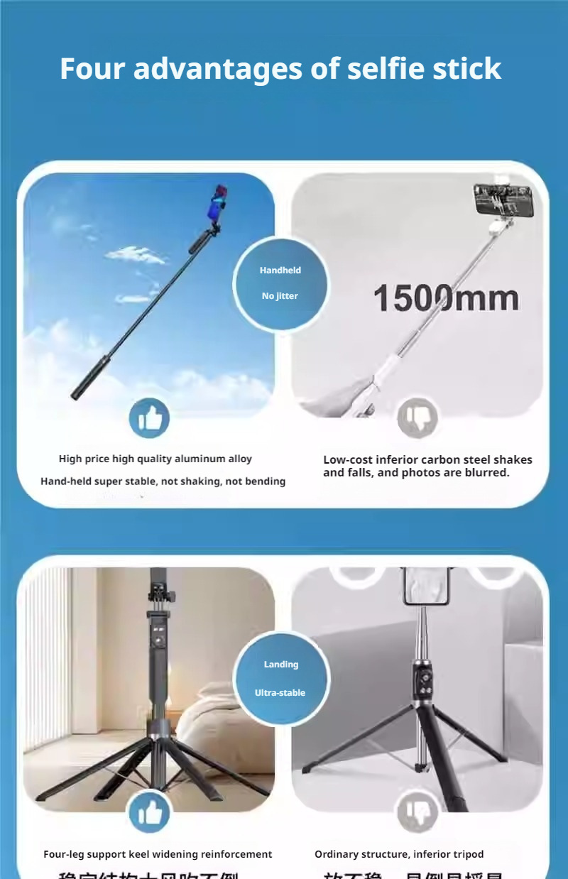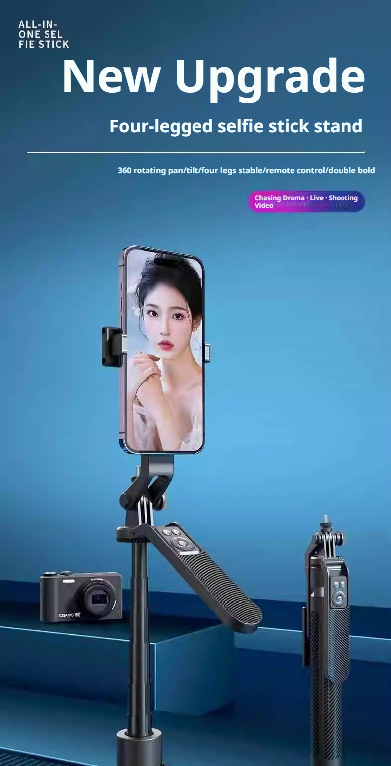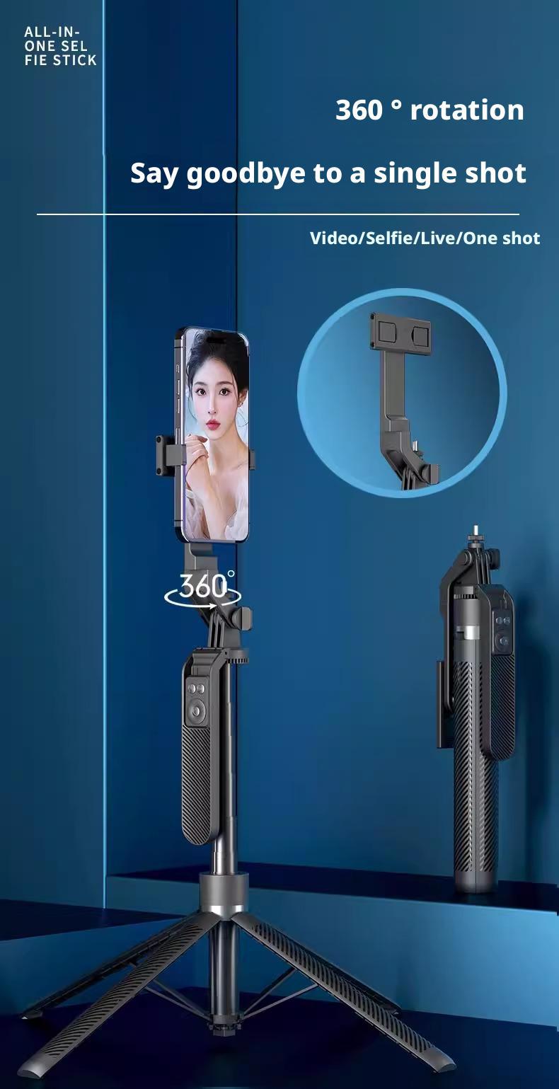 A14 알루미늄 합금 블루투스 휴대폰 셀카봉 Douyin 라이브 셀카, 원클릭 팝업 다기능 플로어 스탠드 포함