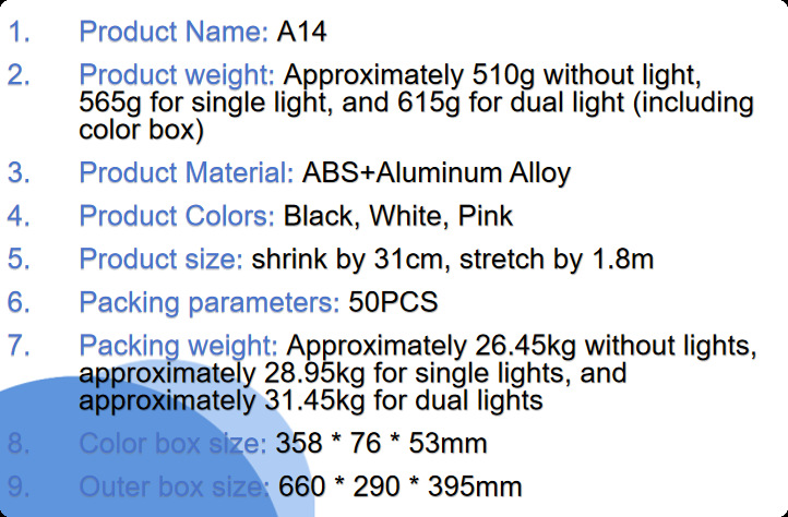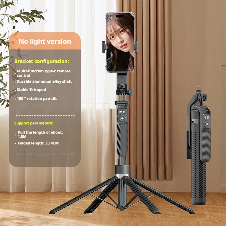• A14 라이트리스 버전 블랙 [ 1.8m 알루미늄 합금 4다리 삼각대 셀카봉 + 충전식 Douyin 리모컨 ]