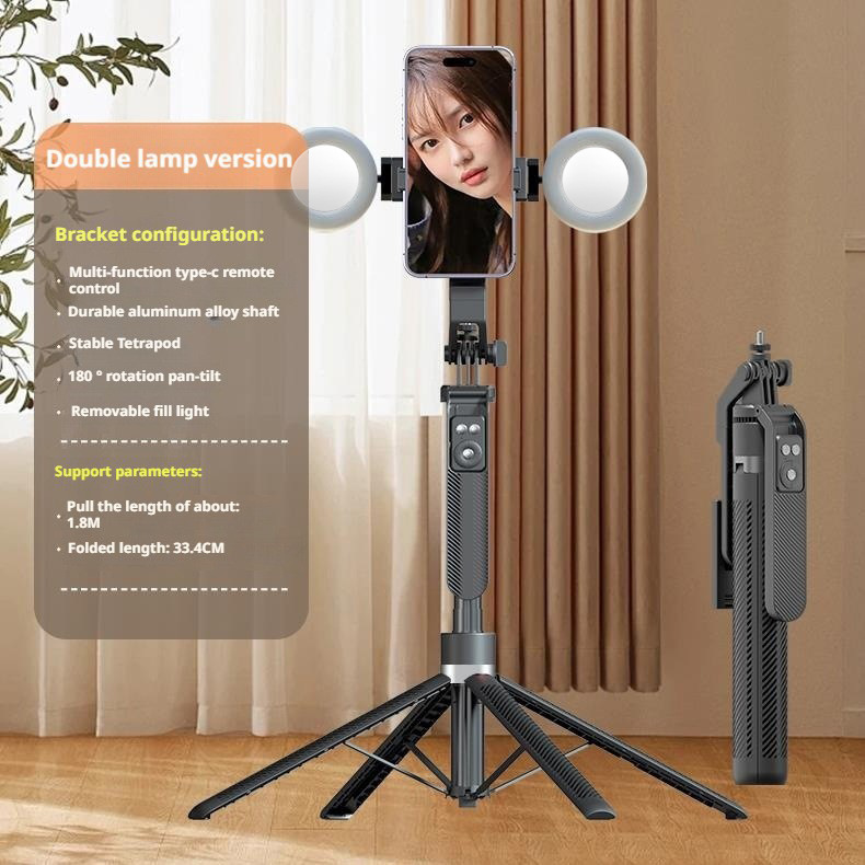 • A14 듀얼 라이트 버전 블랙 [대형 원형 조명 2개 + 1.8m 알루미늄 합금 4다리 삼각대 셀카봉 + 충전식 Douyin 리모컨]