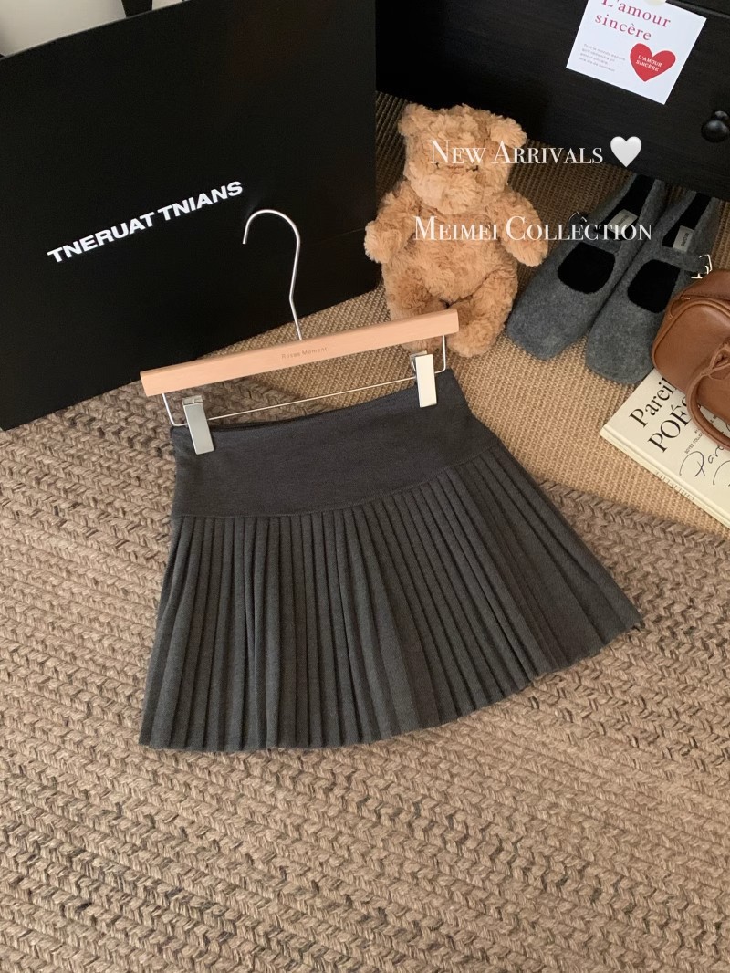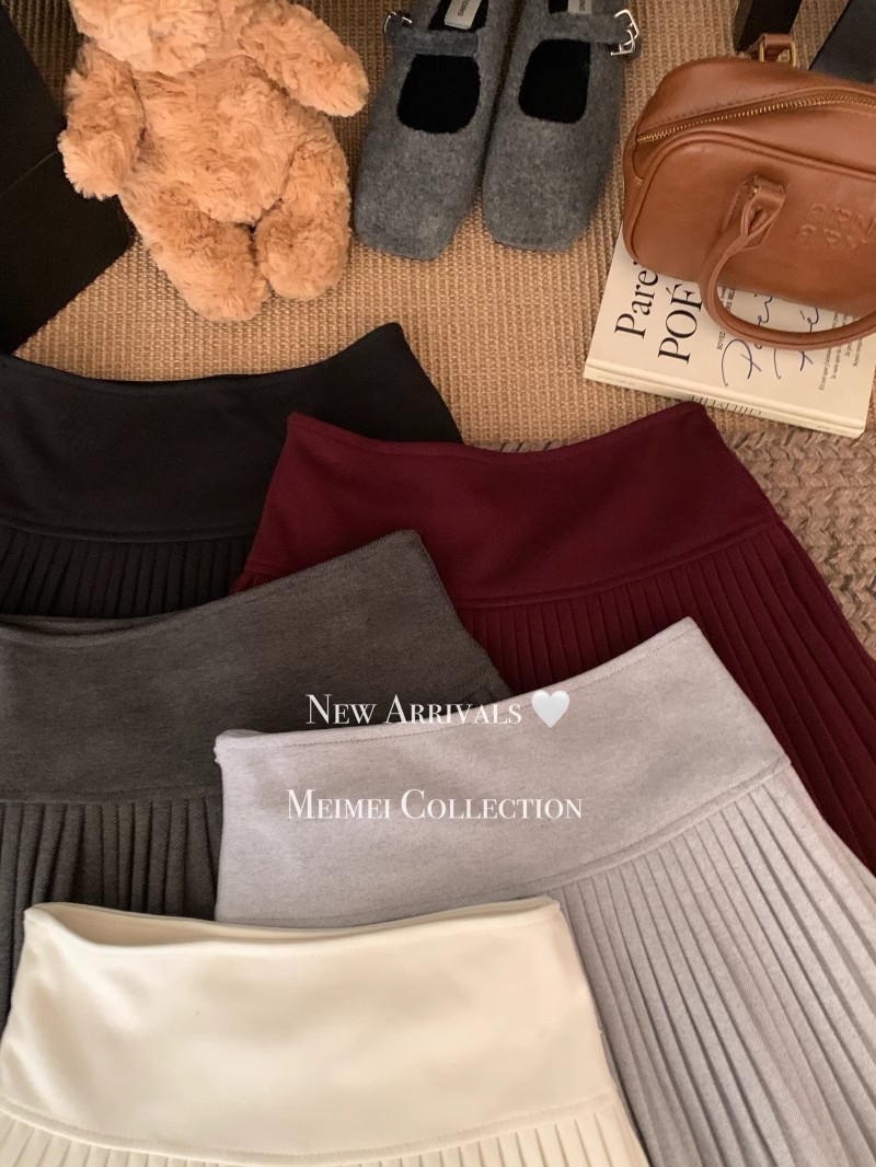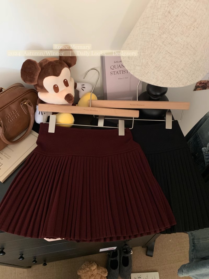 (두꺼운 모직 + 안전바지 + 지퍼) 스몰 플리츠 플리츠 스커트 숏 스커트 A라인 스커트 봄, 가을, 겨울