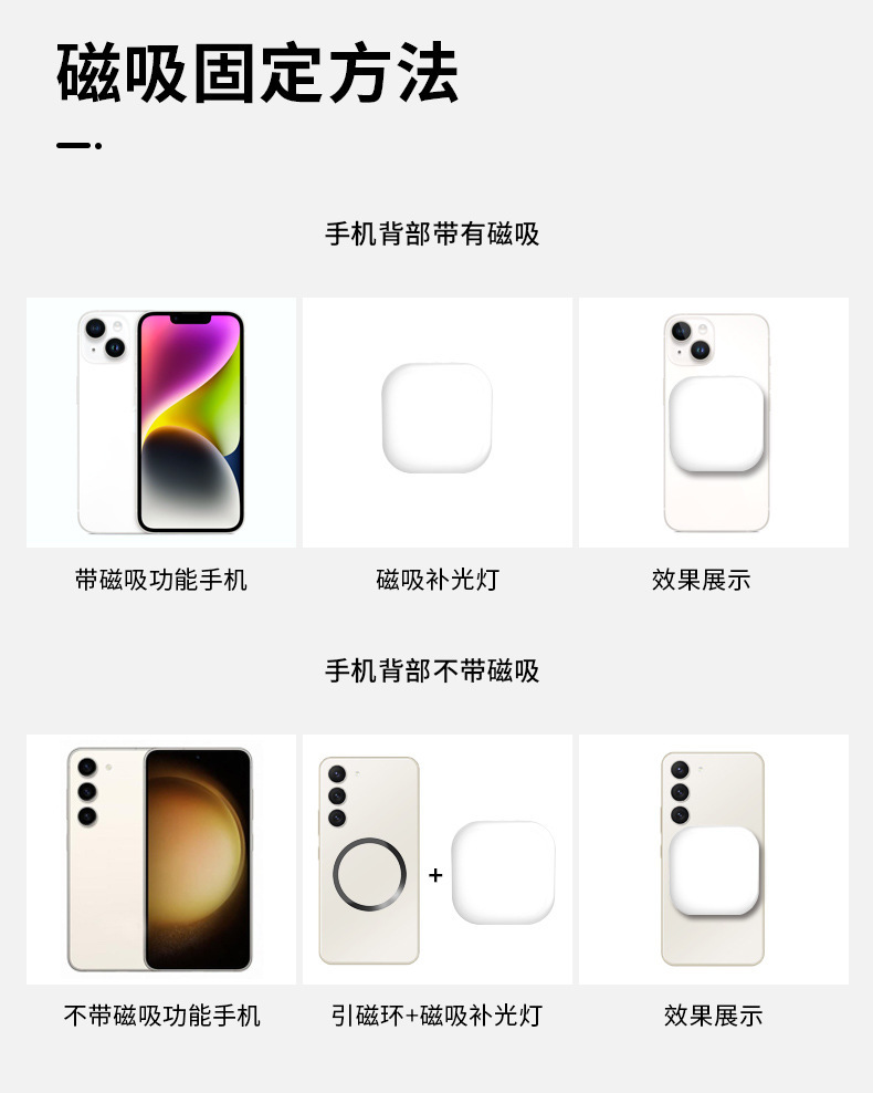 국경 간 인기 판매 필 라이트 조정 가능한 클립 포켓 라이트 3 색 온도 공장 도매 야외 자기 미니 휴대 전화스토어 가기