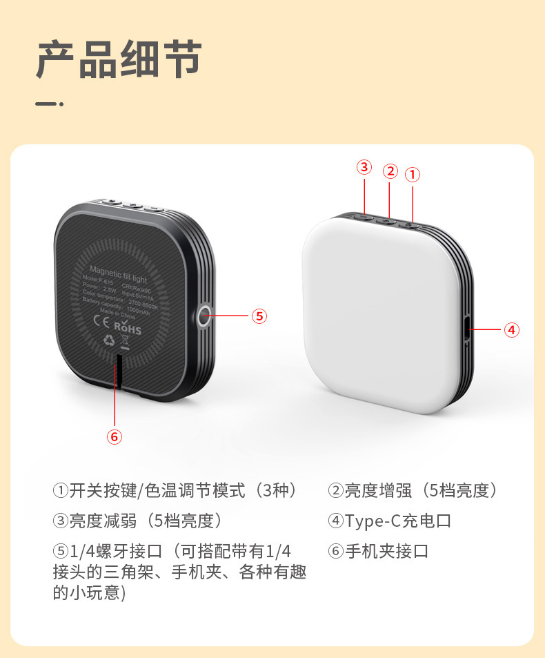 국경 간 인기 판매 필 라이트 조정 가능한 클립 포켓 라이트 3 색 온도 공장 도매 야외 자기 미니 휴대 전화