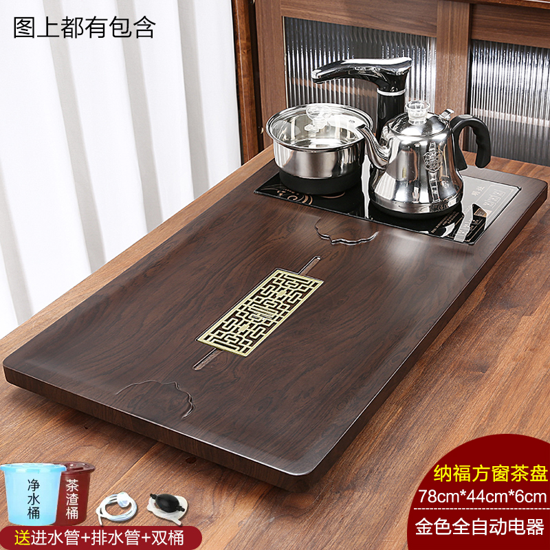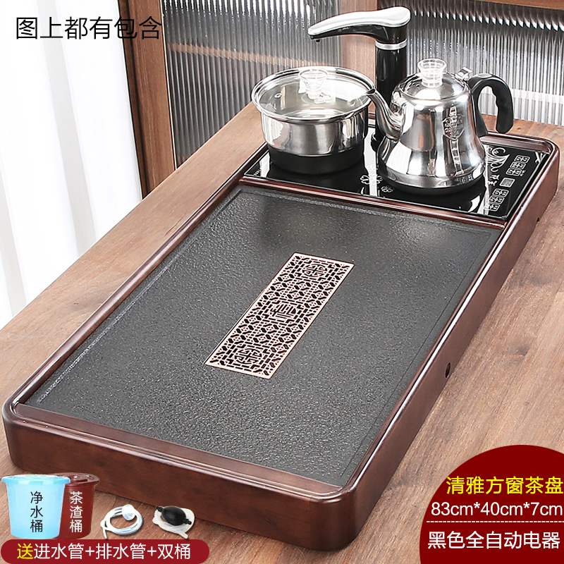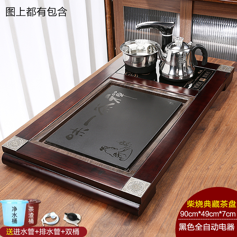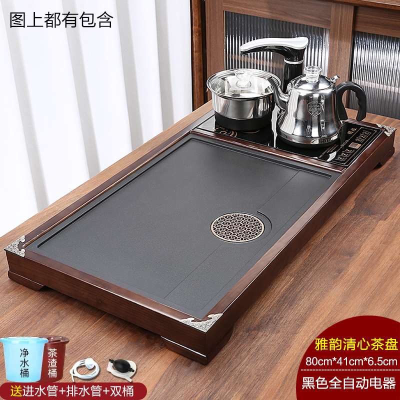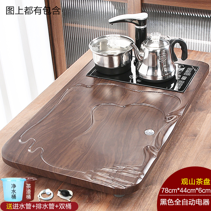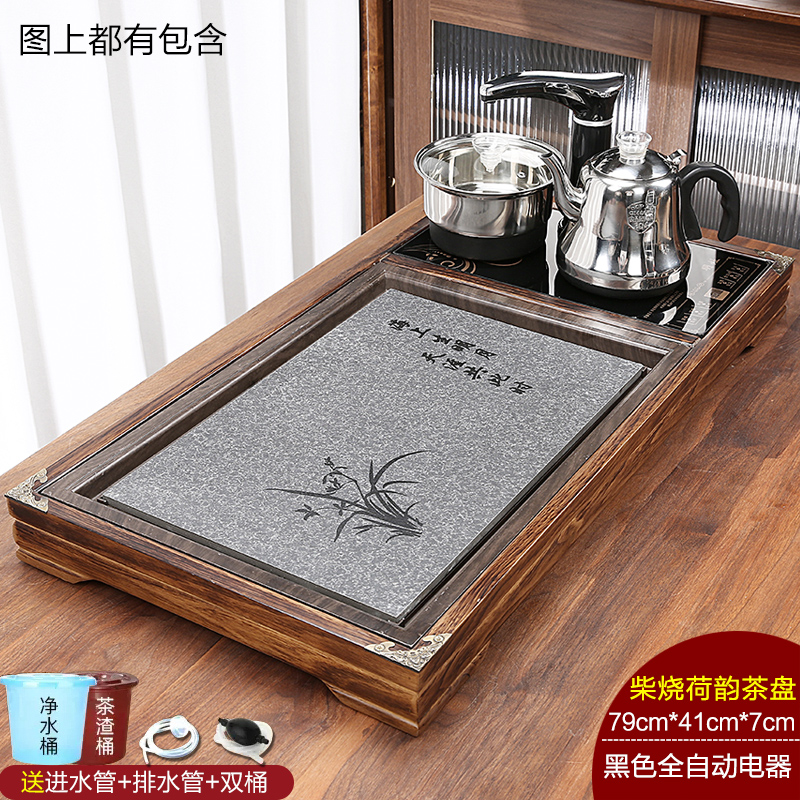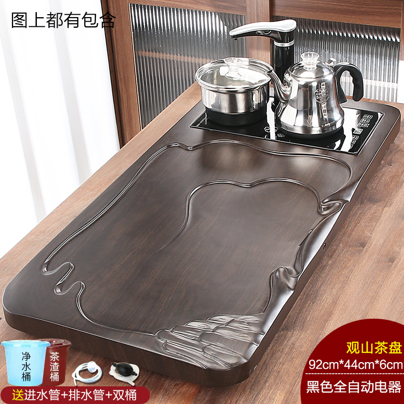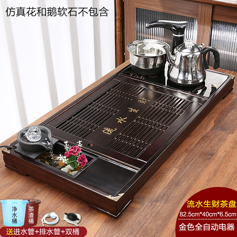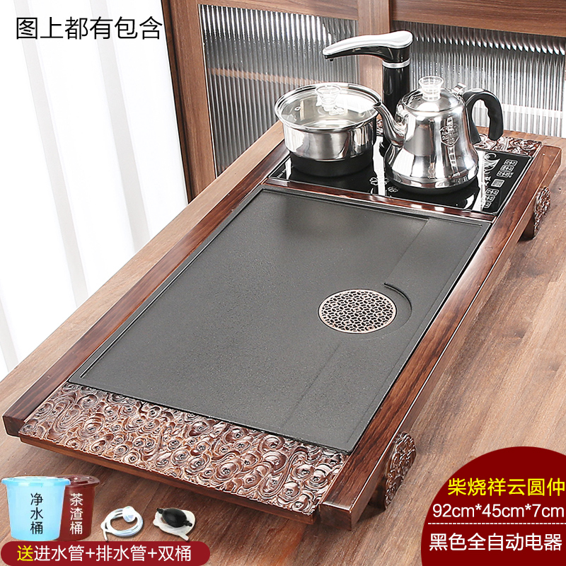 완전 자동 차 트레이 단단한 나무 가정용 새로운 스톤 차 테이블 주전자 통합 대형 차 바다 차 세트 배수 트레이