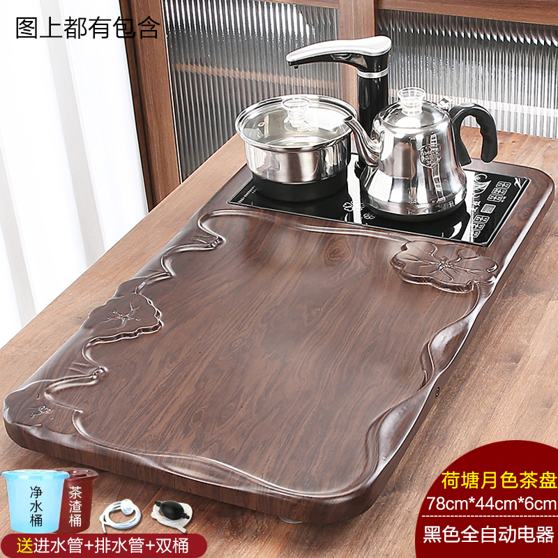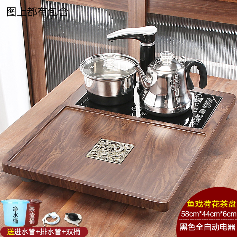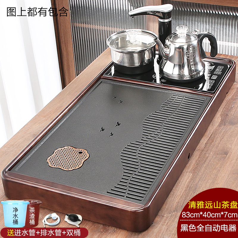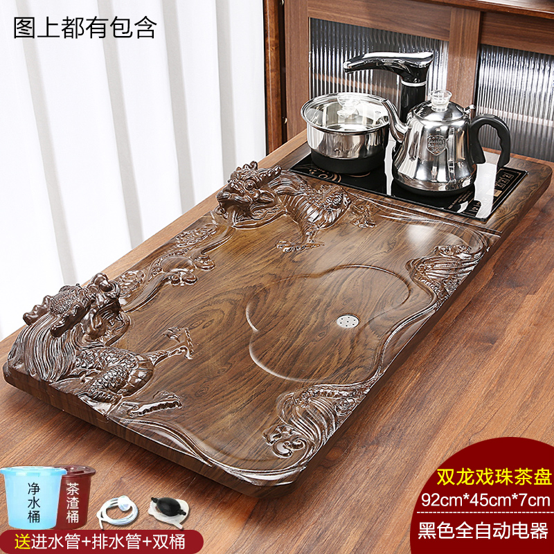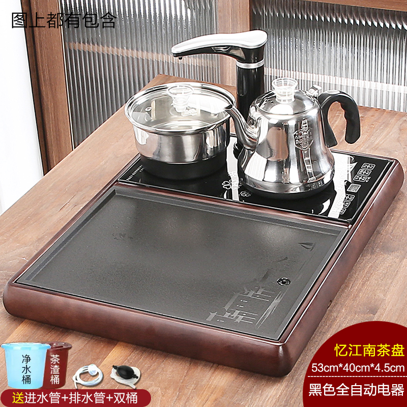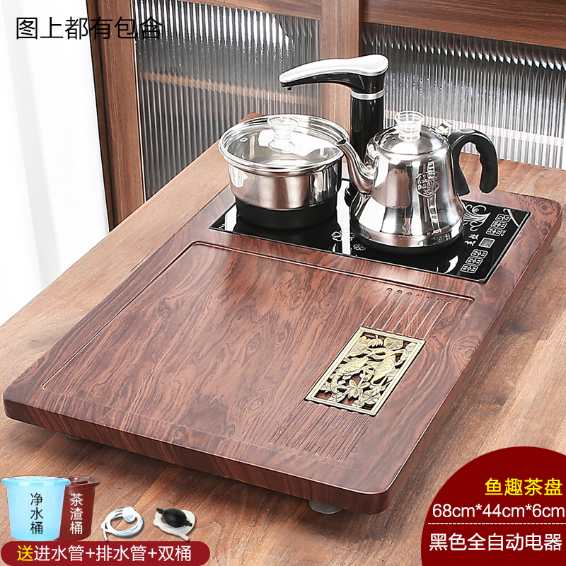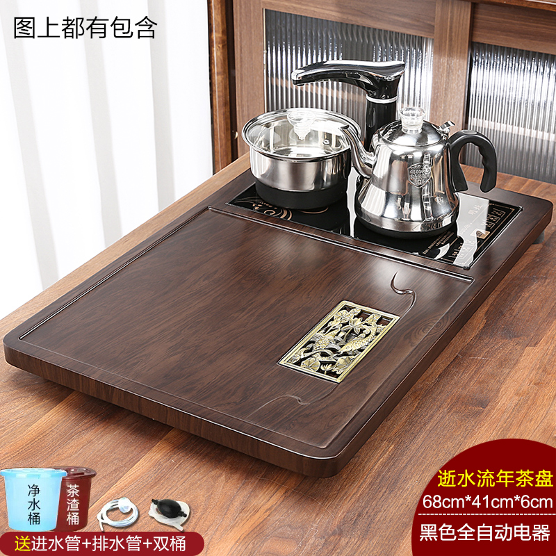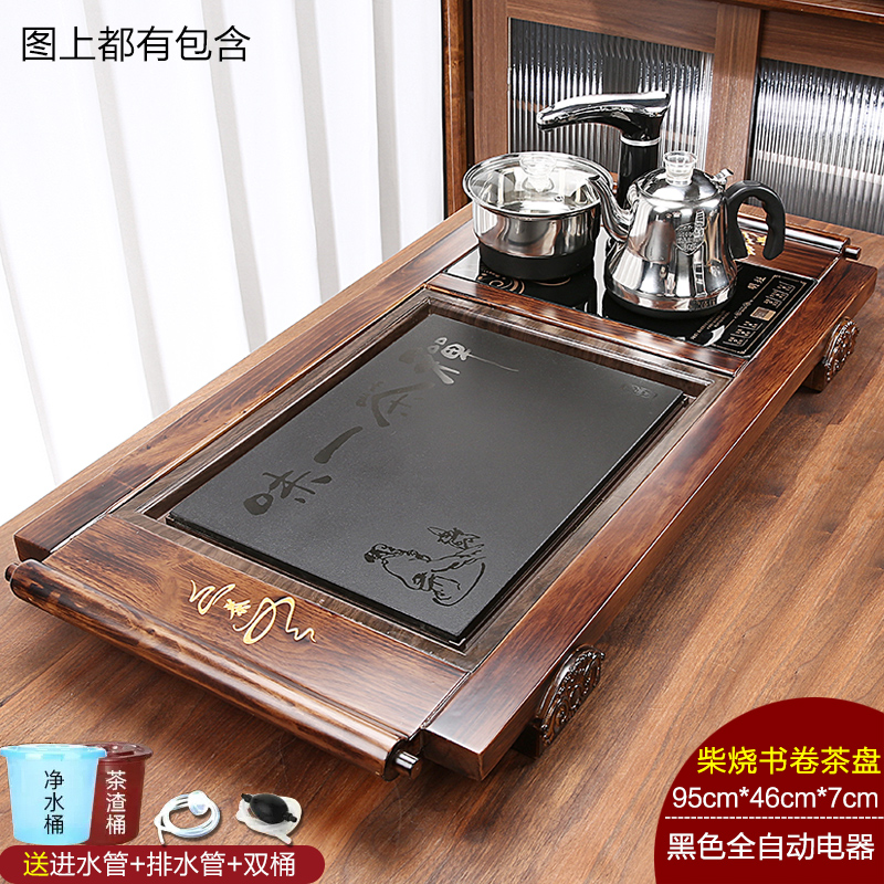 완전 자동 차 트레이 단단한 나무 가정용 새로운 스톤 차 테이블 주전자 통합 대형 차 바다 차 세트 배수 트레이