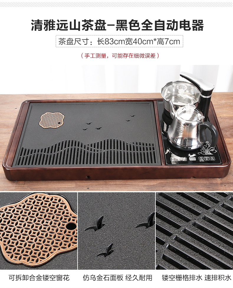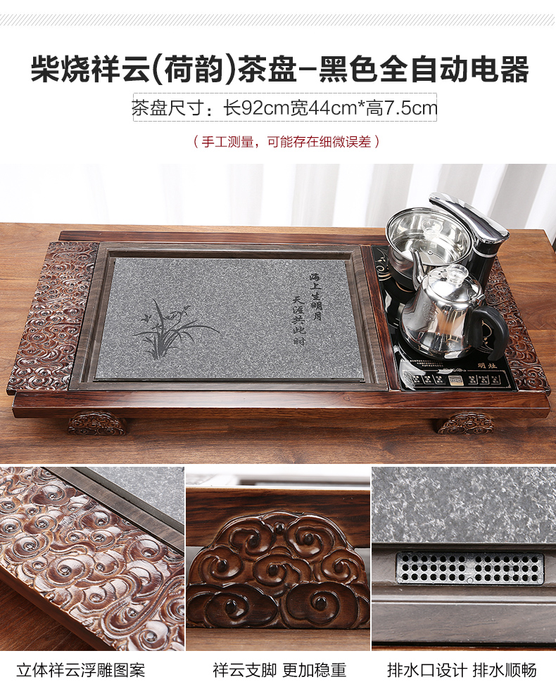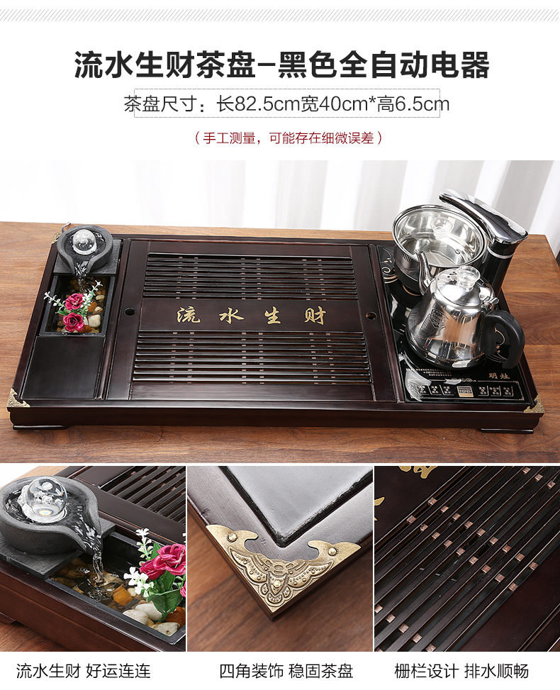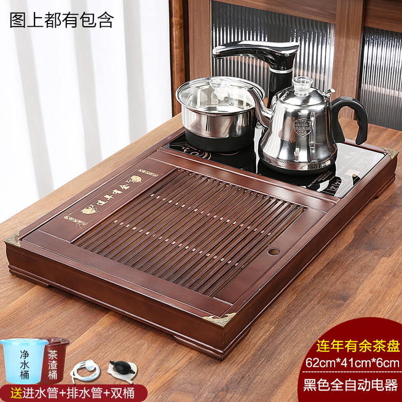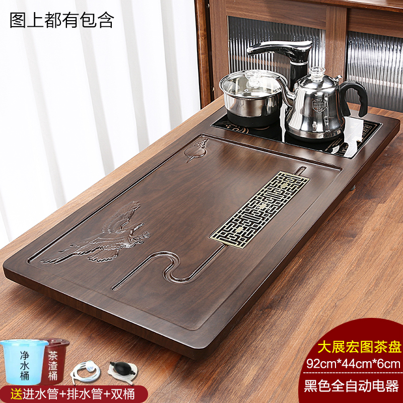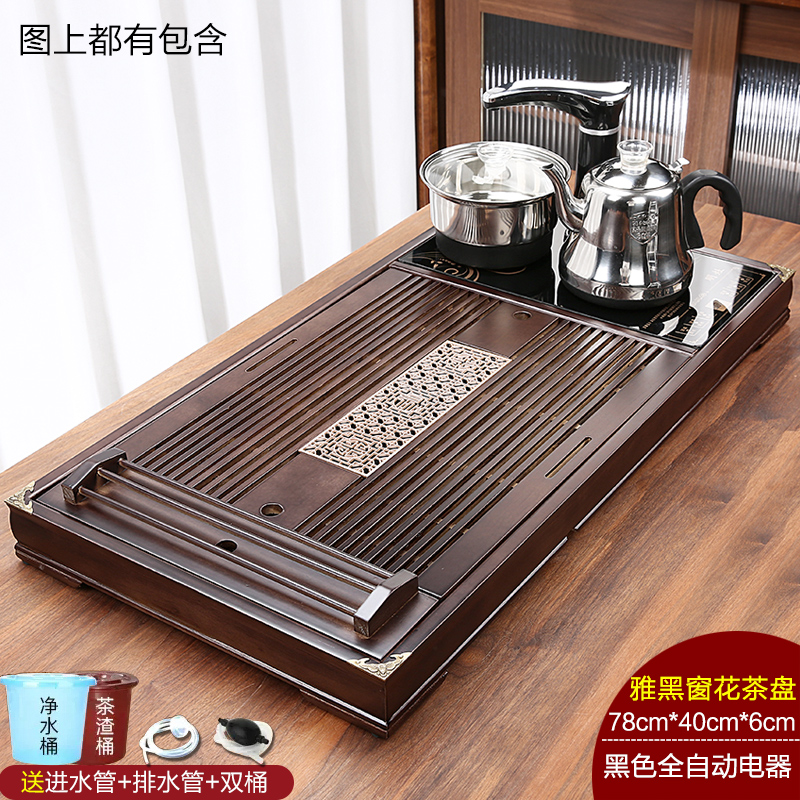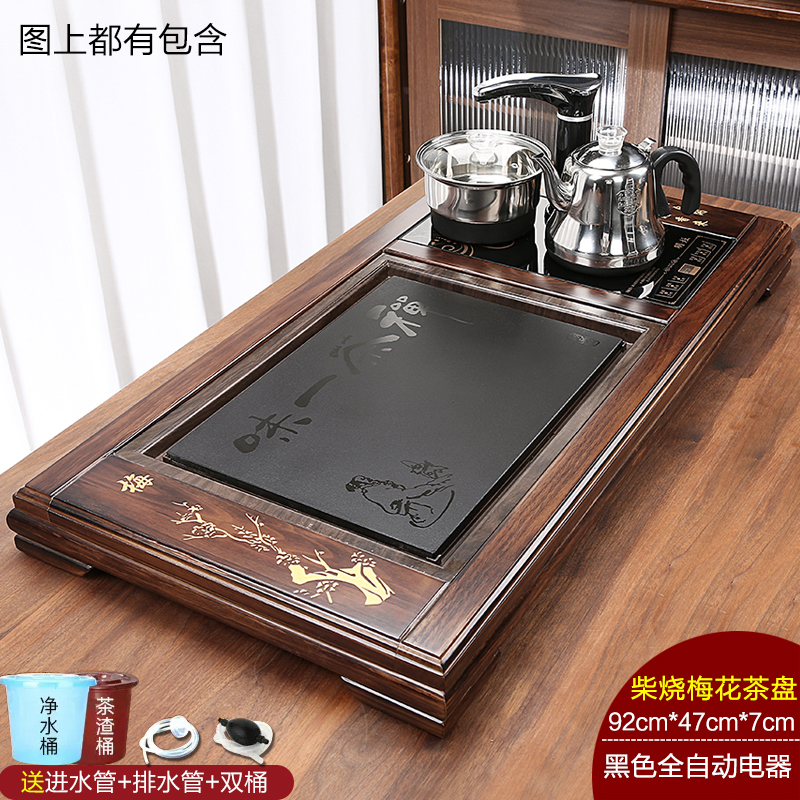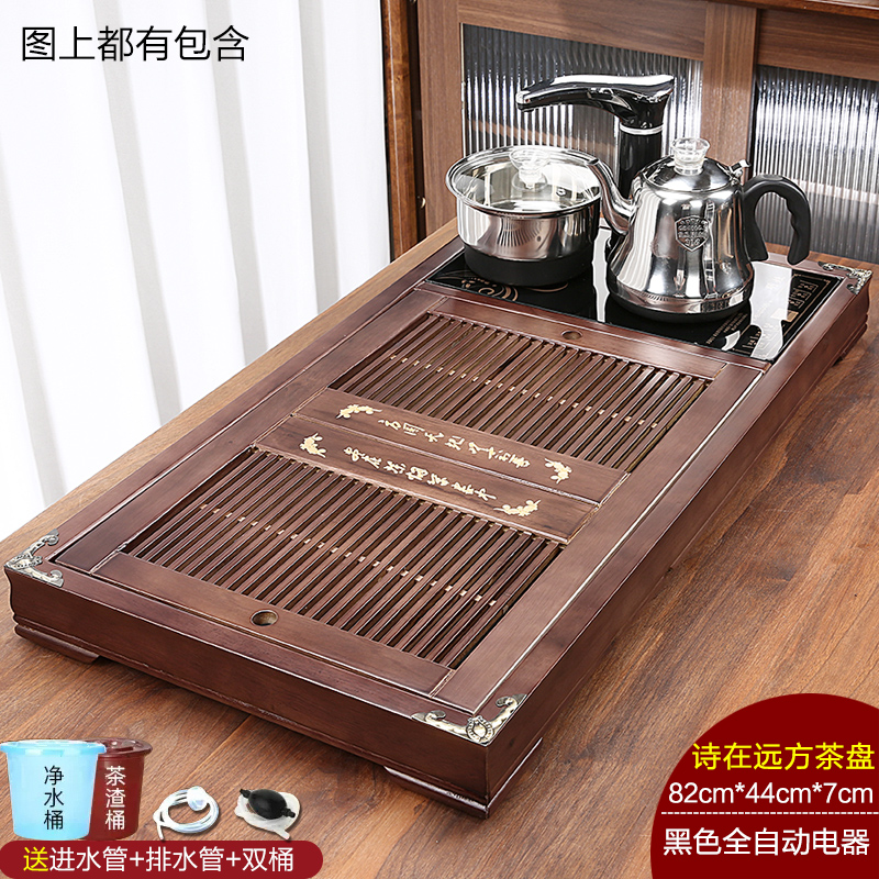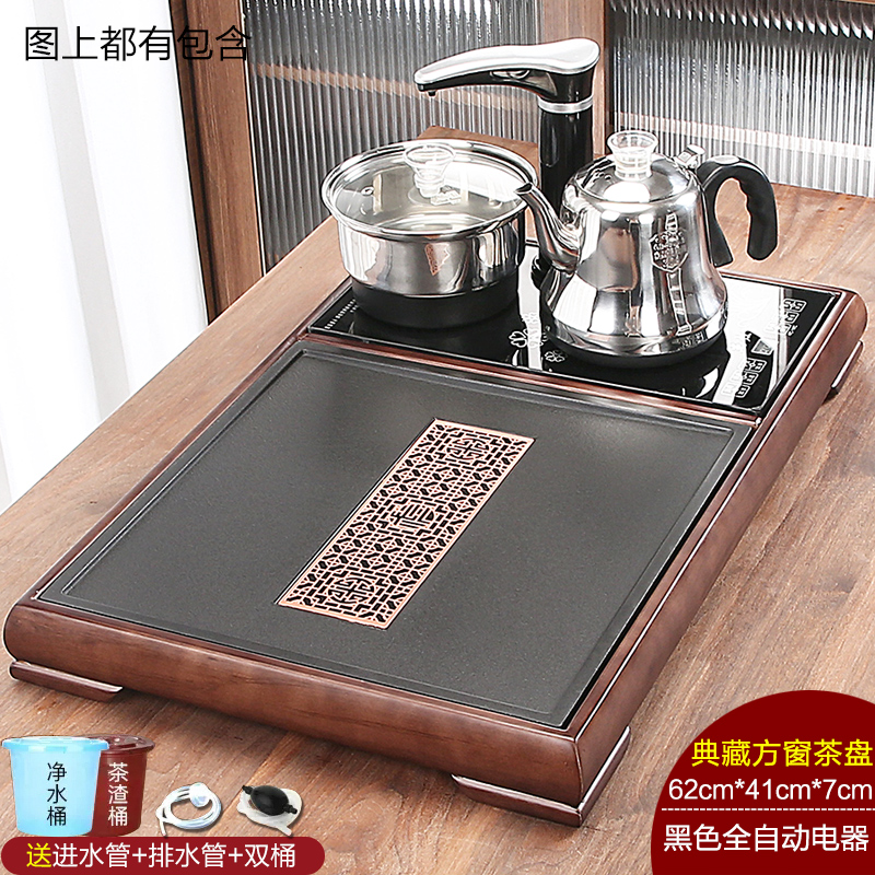 완전 자동 차 트레이 단단한 나무 가정용 새로운 스톤 차 테이블 주전자 통합 대형 차 바다 차 세트 배수 트레이