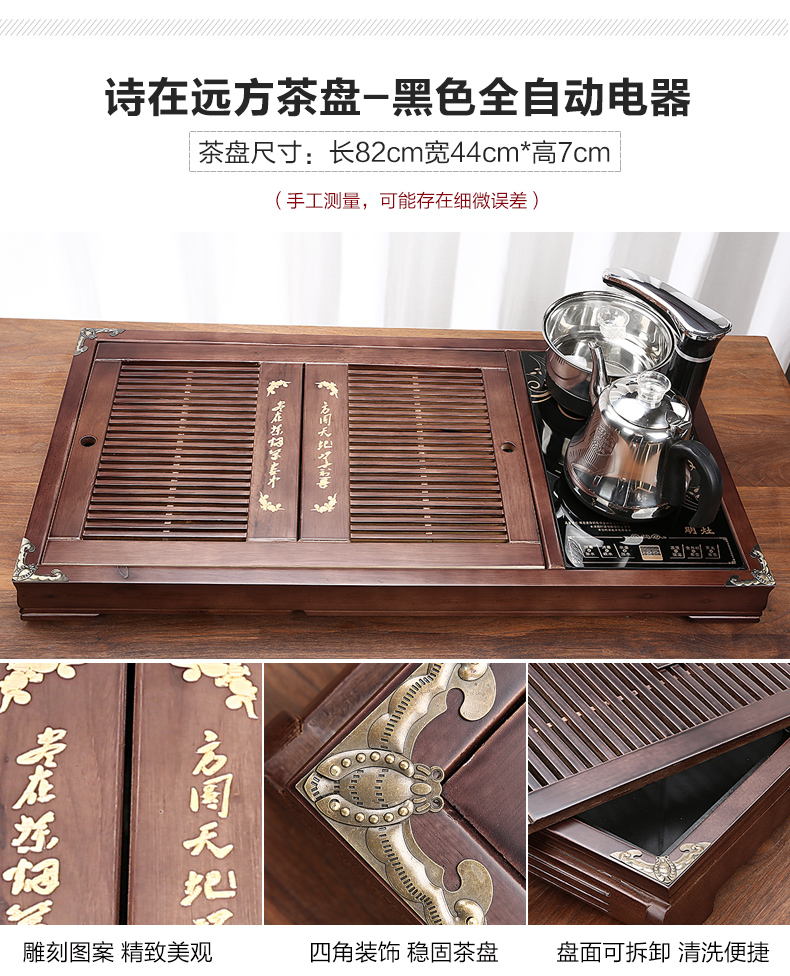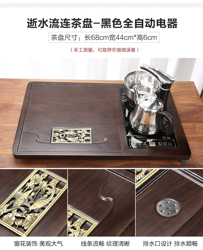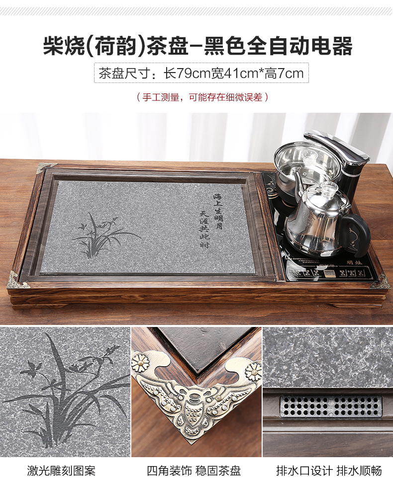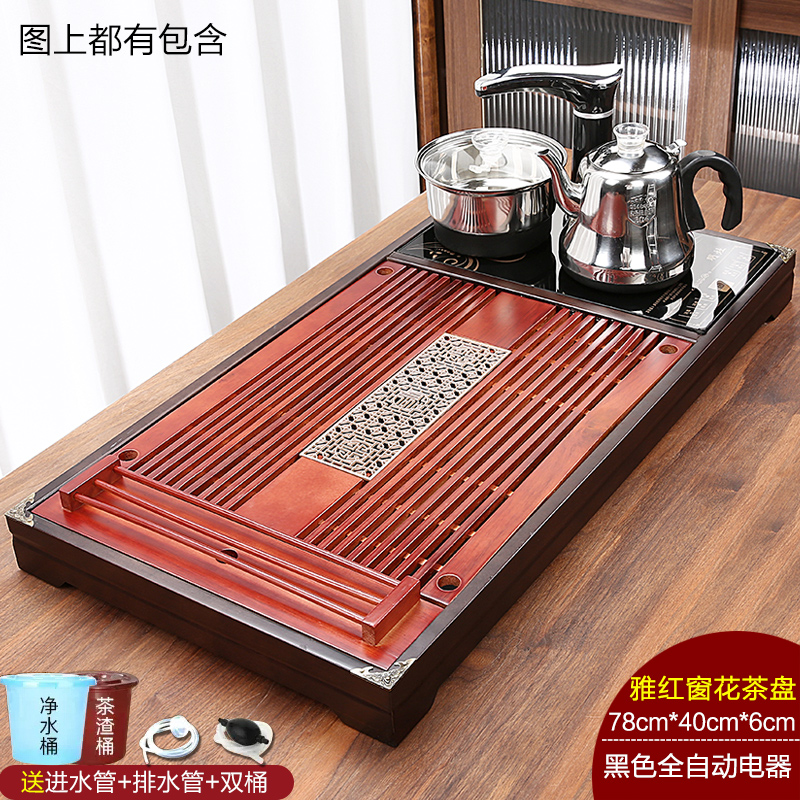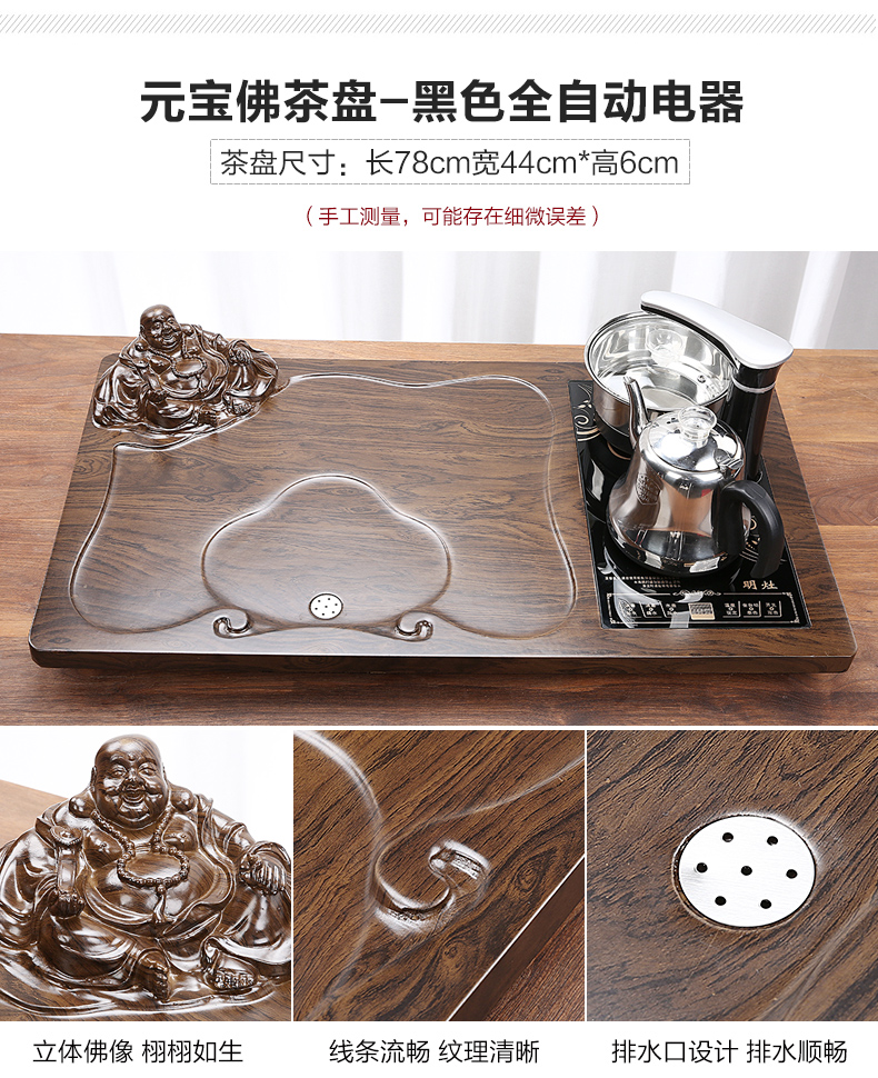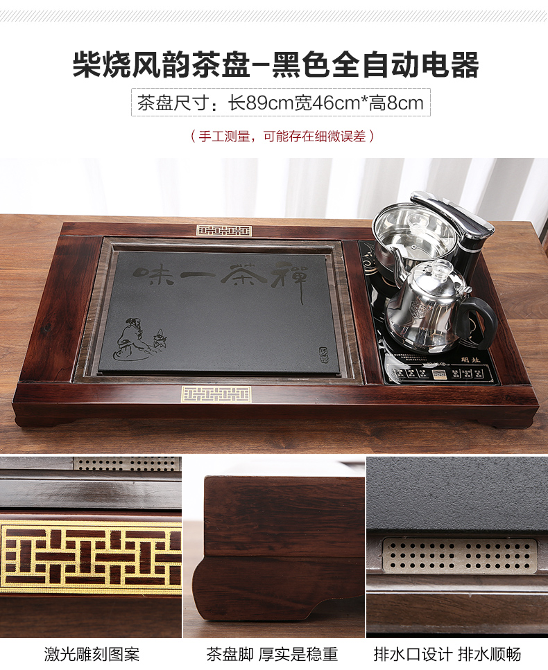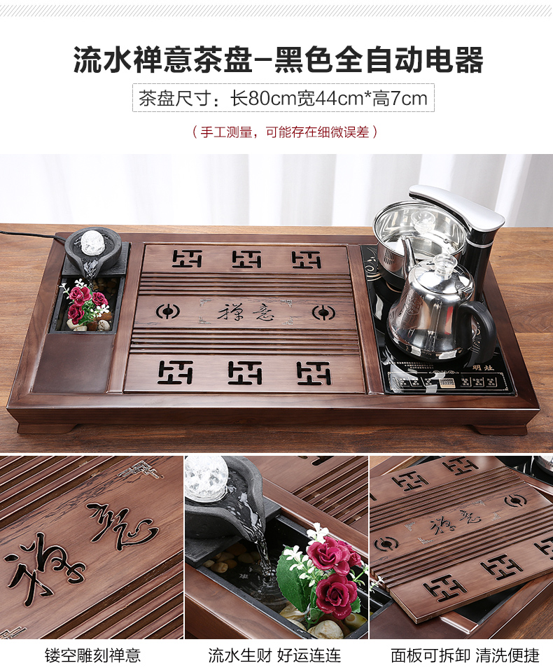 완전 자동 차 트레이 단단한 나무 가정용 새로운 스톤 차 테이블 주전자 통합 대형 차 바다 차 세트 배수 트레이