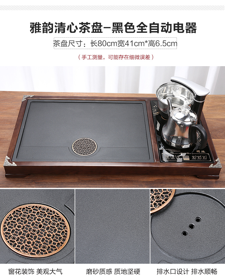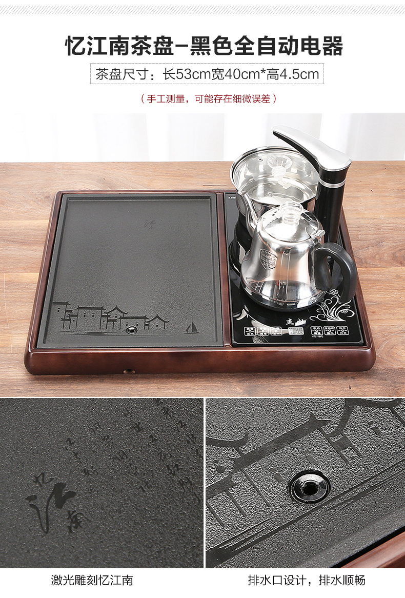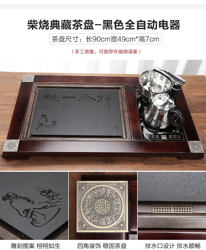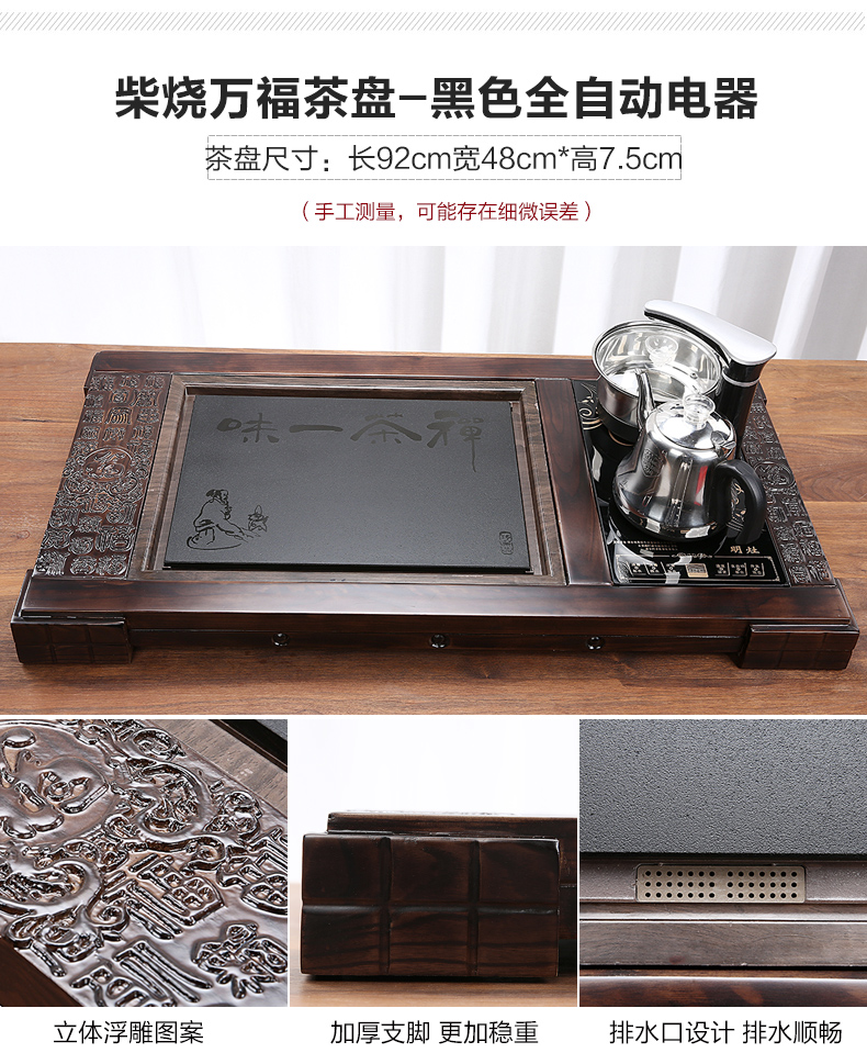 완전 자동 차 트레이 단단한 나무 가정용 새로운 스톤 차 테이블 주전자 통합 대형 차 바다 차 세트 배수 트레이스토어 가기