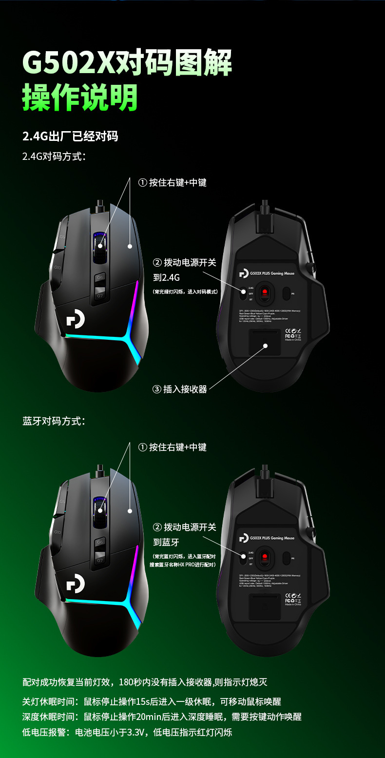 국경 간 G502 X PLUS 무선 게임용 마우스 프로그래밍 가능 충전식 새로운 RGB 눈부심 하이브리드 마이크로 모션