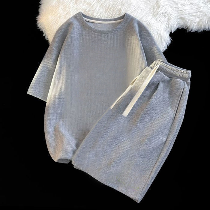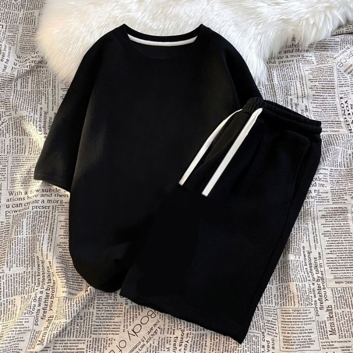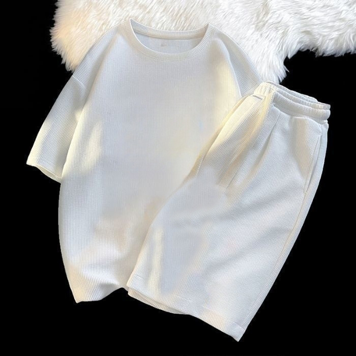 2026년 여름 신상 와플 반팔 티셔츠 반바지 세트 남녀공용 솔트 스타일 스트리트 패션 캐주얼 스포츠 투피스 세트