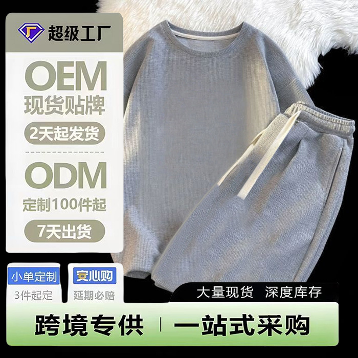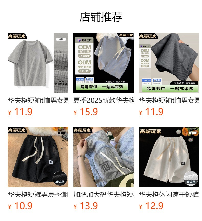 2026년 여름 신상 와플 반팔 티셔츠 반바지 세트 남녀공용 솔트 스타일 스트리트 패션 캐주얼 스포츠 투피스 세트스토어 가기