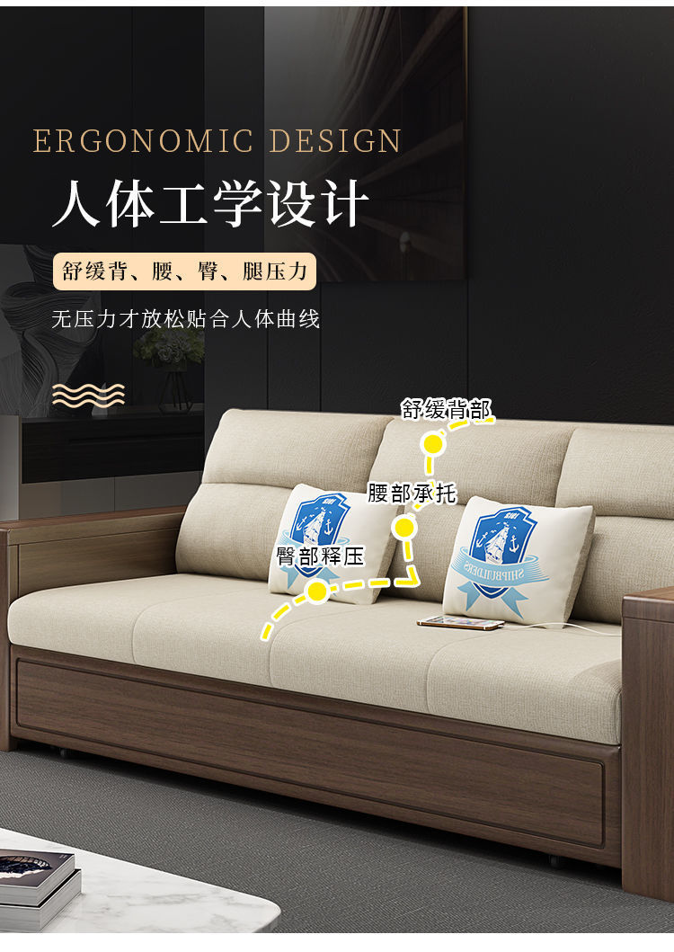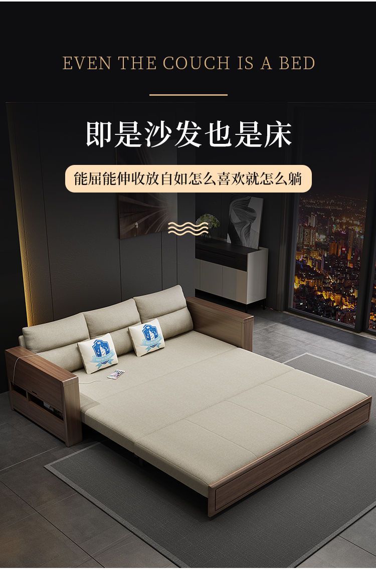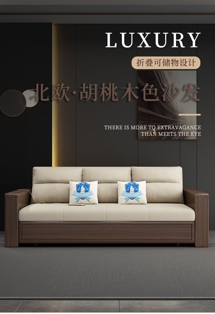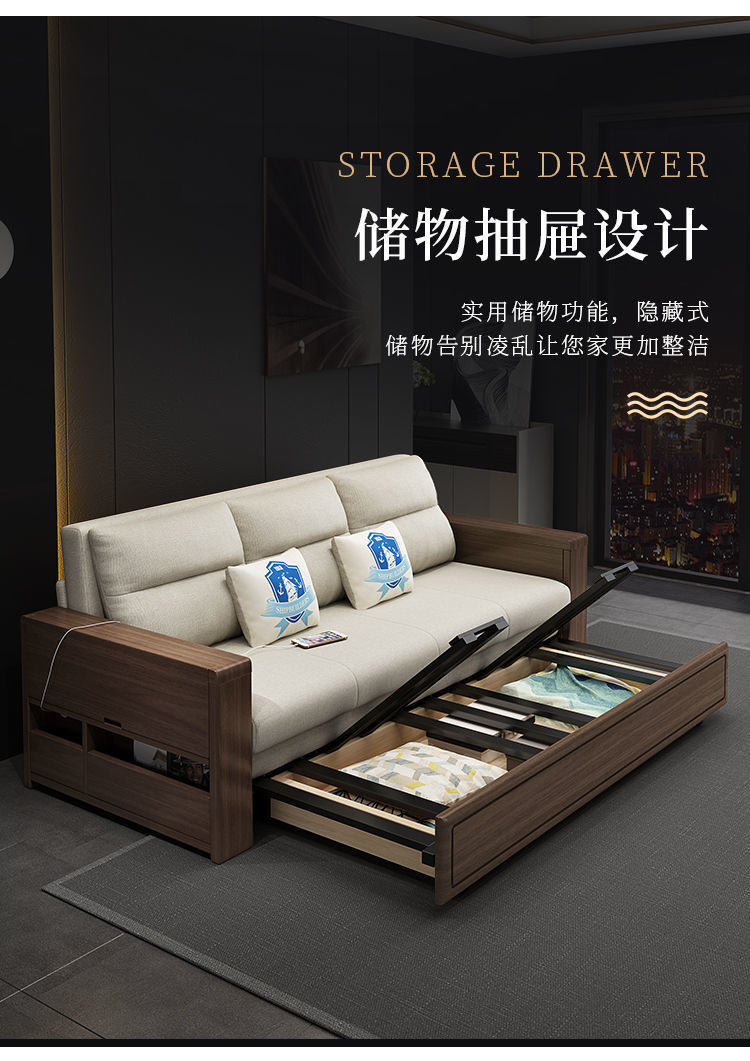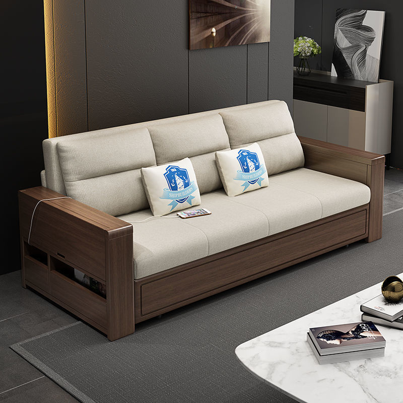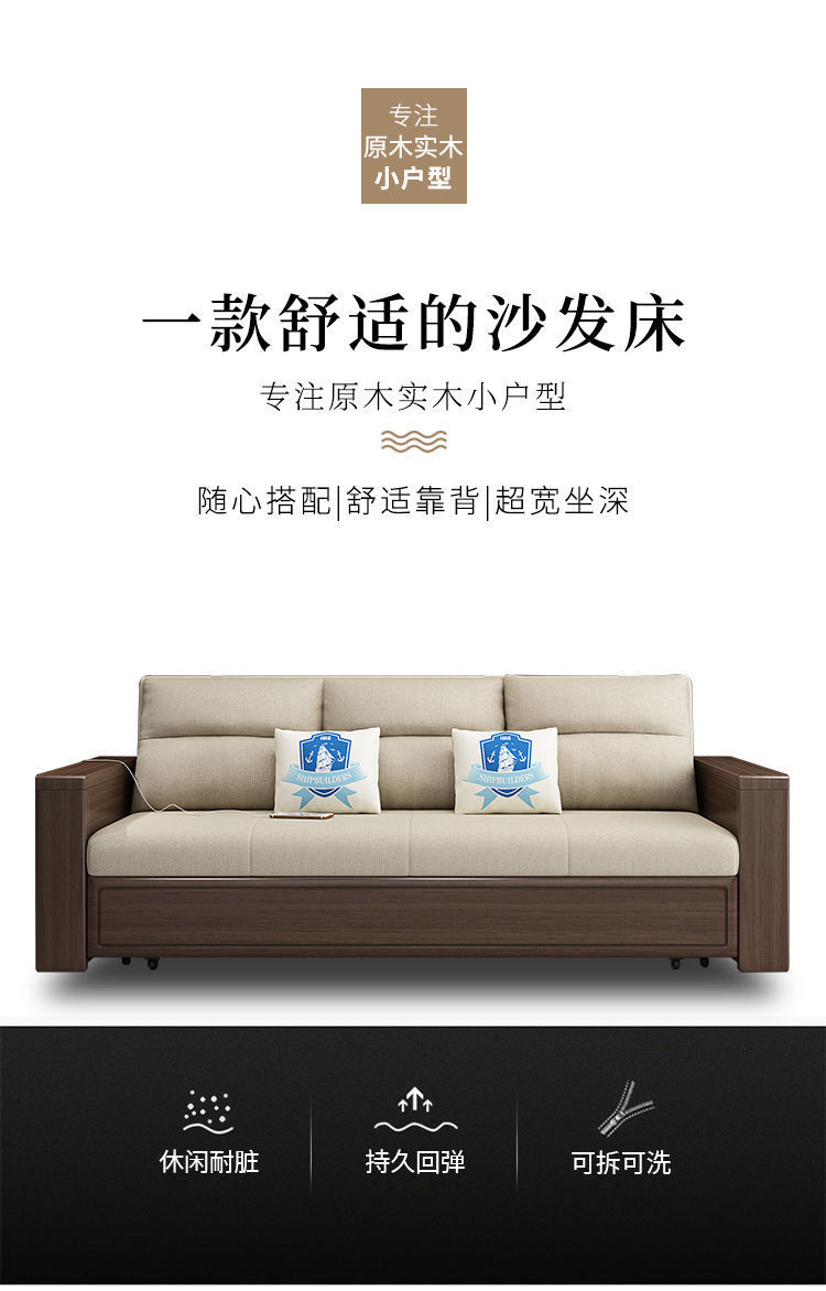 작은 아파트 북유럽 단단한 나무 접이식 소파 침대 더블 싱글 다기능 이중 목적 좌석 침대 거실 수납 소파스토어 가기