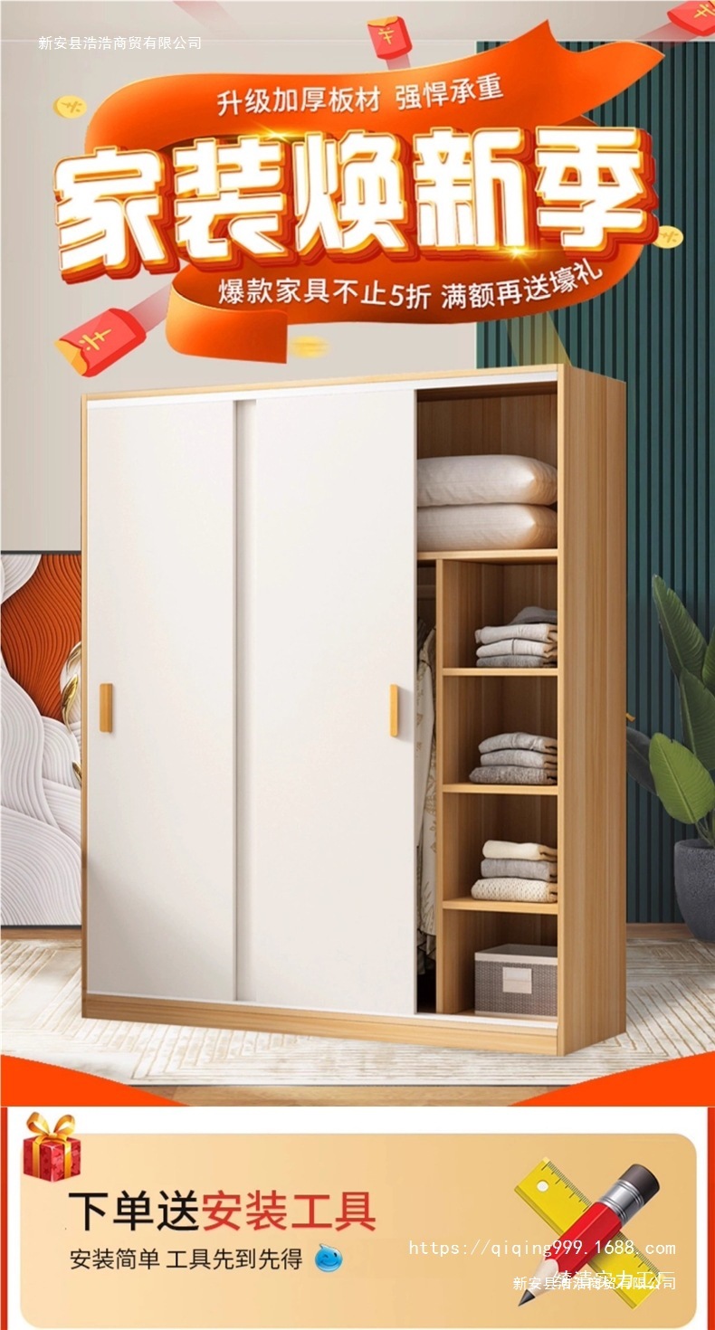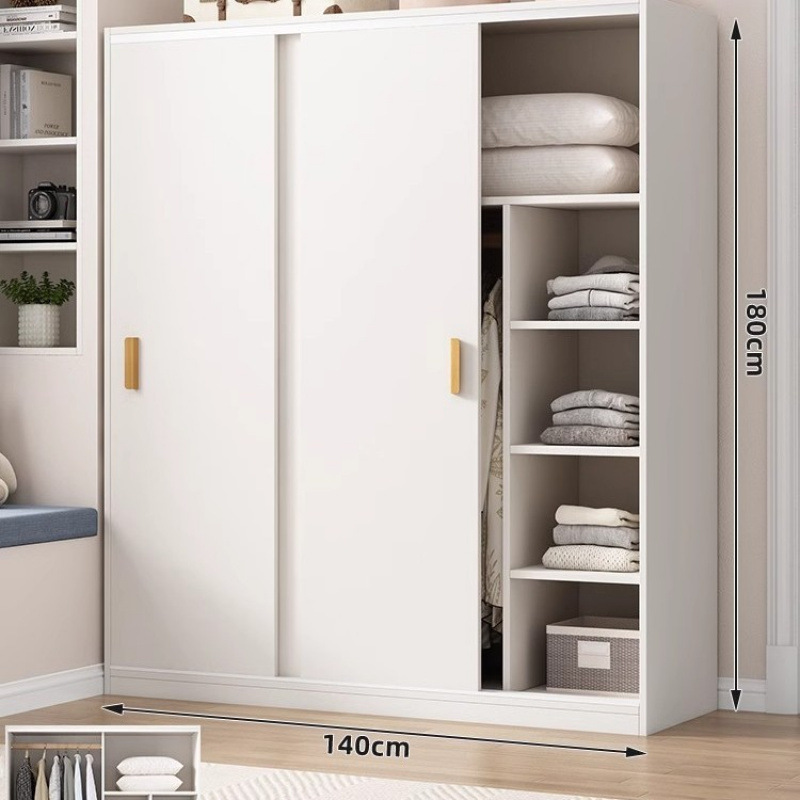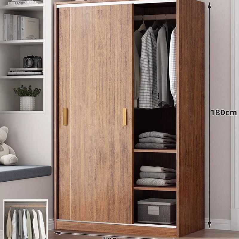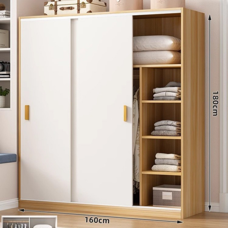 옷장 홈 침실 슬라이딩 도어 원목 임대 주택 어린이 옷장 간단한 조립 보관 캐비닛