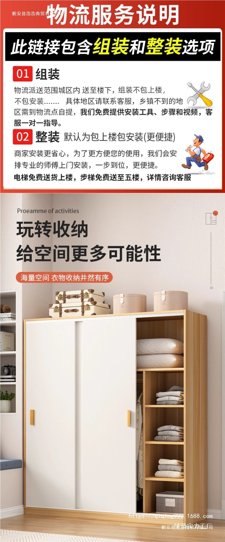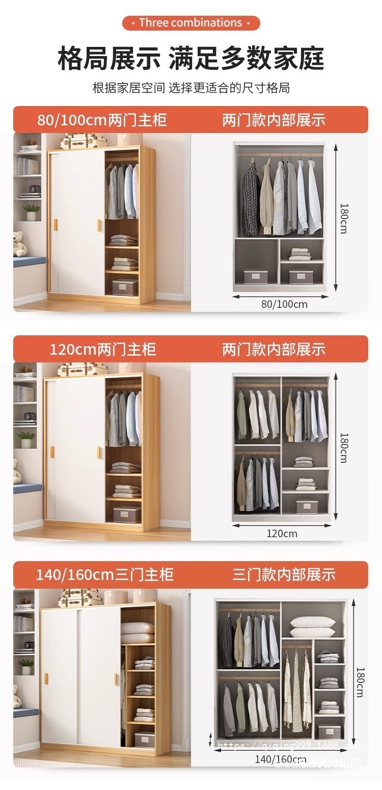 옷장 홈 침실 슬라이딩 도어 원목 임대 주택 어린이 옷장 간단한 조립 보관 캐비닛스토어 가기
