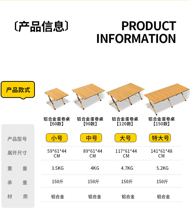 T6F 야외 접이식 테이블 알루미늄 합금 계란 롤 테이블 휴대용 캠핑 테이블과 의자 스톨 피크닉 테이블 바베큐스토어 가기