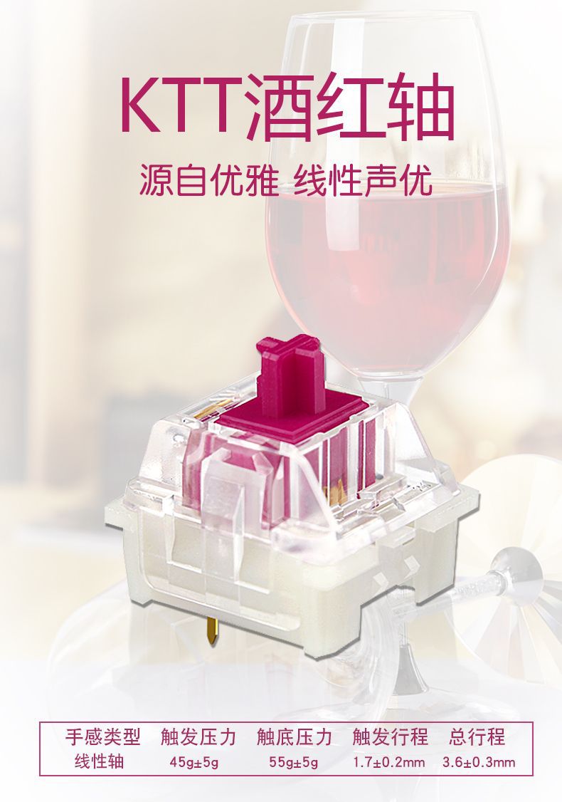 KTT 버건디 축 CONTENT 기계식 키보드 축 크리스탈 선형 축 핫 스왑 가능한 마작 사운드 두꺼운