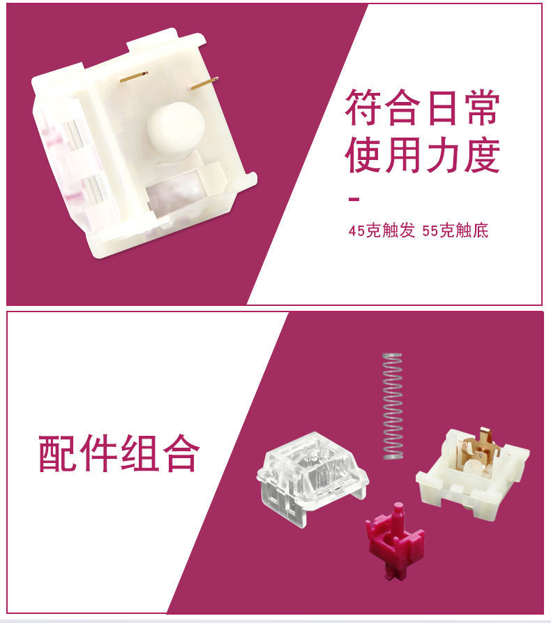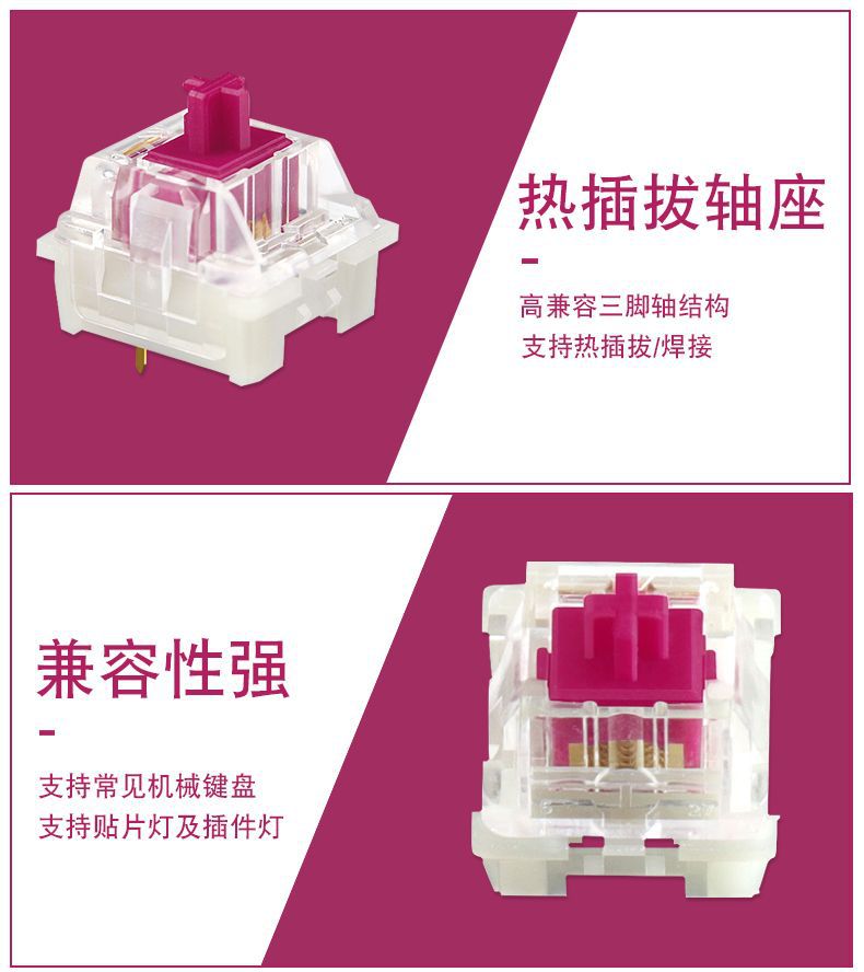 KTT 버건디 축 CONTENT 기계식 키보드 축 크리스탈 선형 축 핫 스왑 가능한 마작 사운드 두꺼운스토어 가기