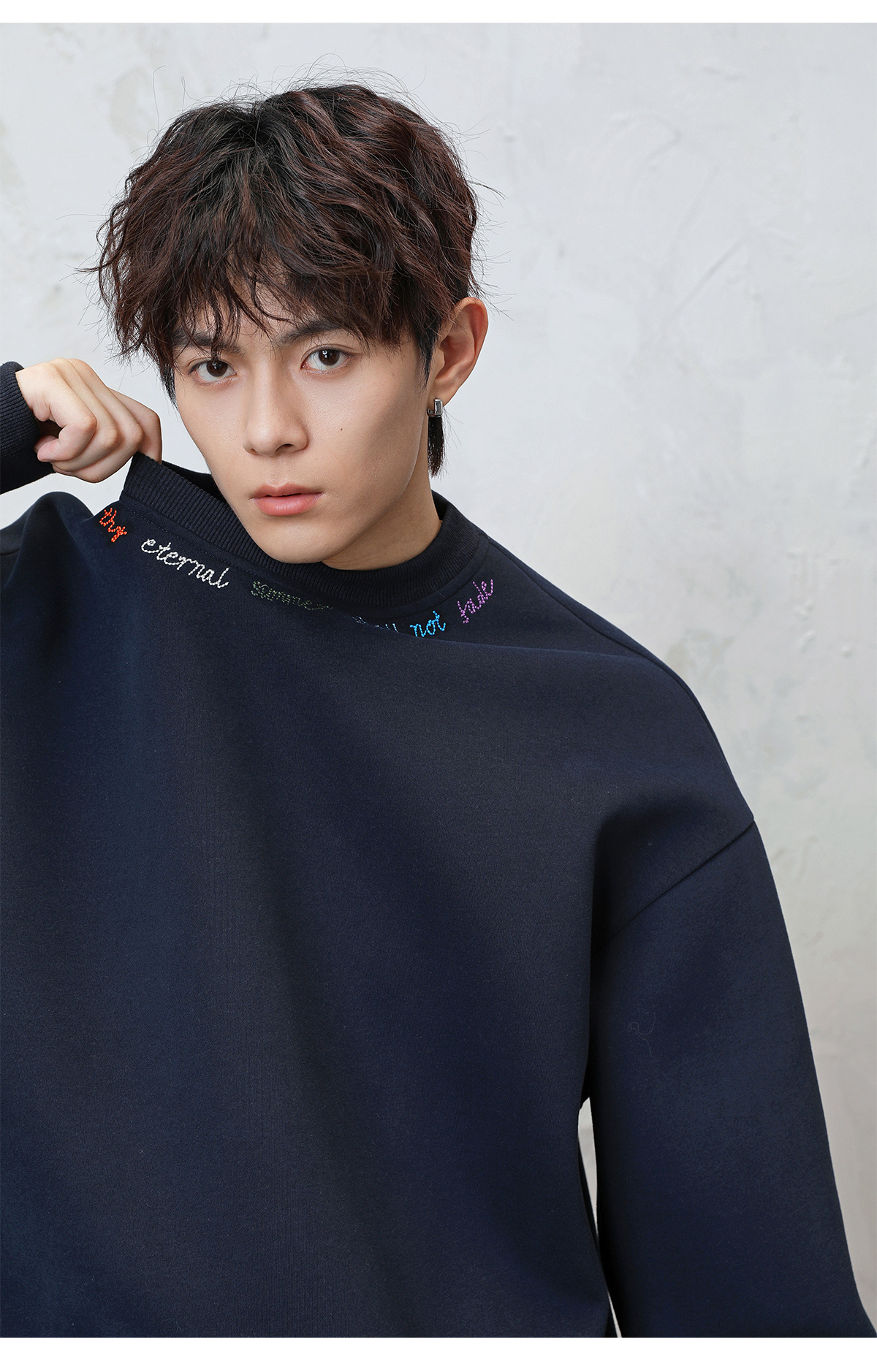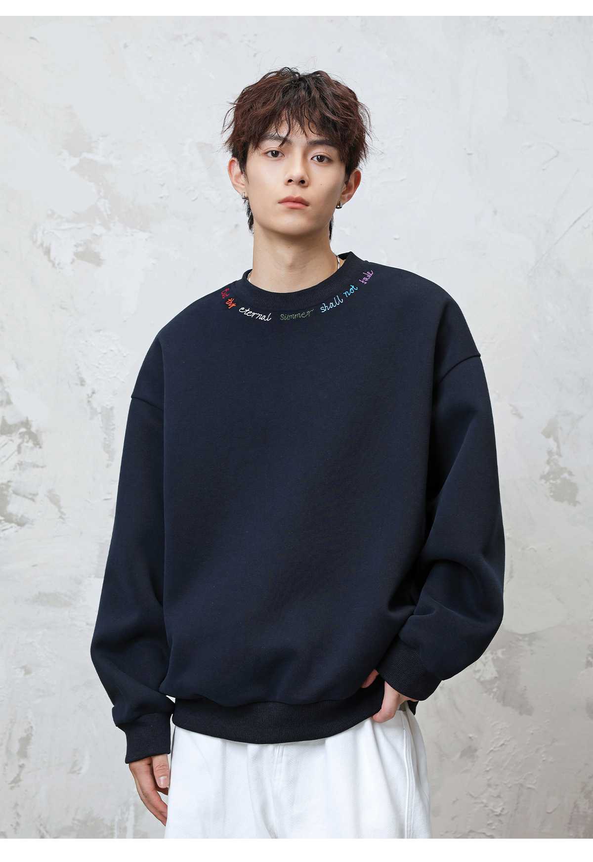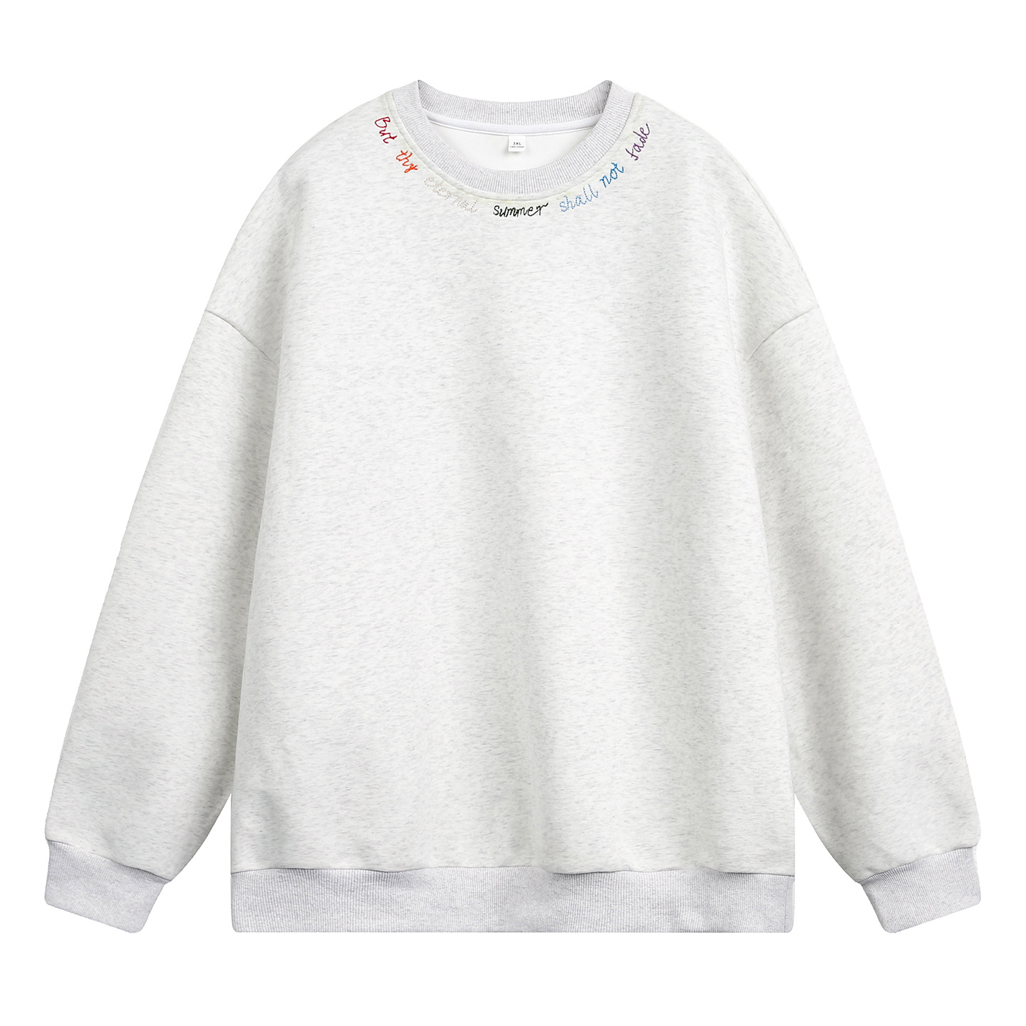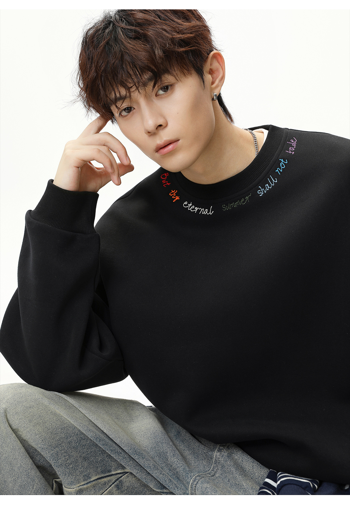 380g 헤비급 라운드 넥 스웨트 셔츠 남성용 가을 새로운 대비 색상 레인보우 문자 자수 실루엣 텍스처 풀오버 재킷스토어 가기