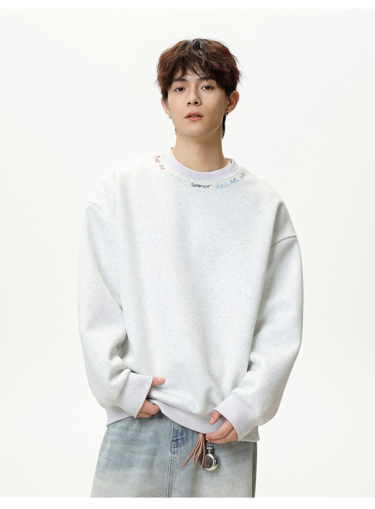380g 헤비급 라운드 넥 스웨트 셔츠 남성용 가을 새로운 대비 색상 레인보우 문자 자수 실루엣 텍스처 풀오버 재킷