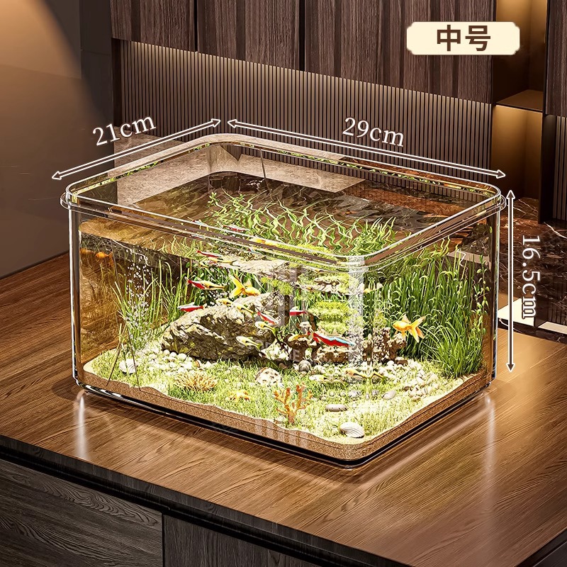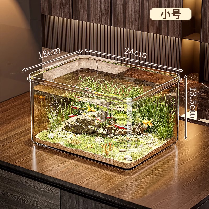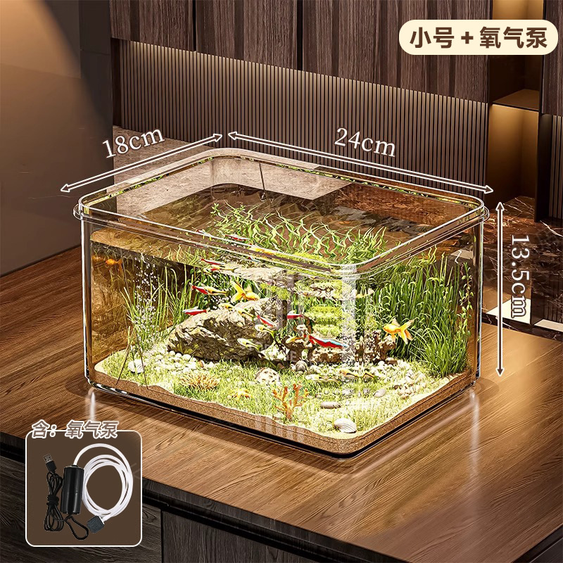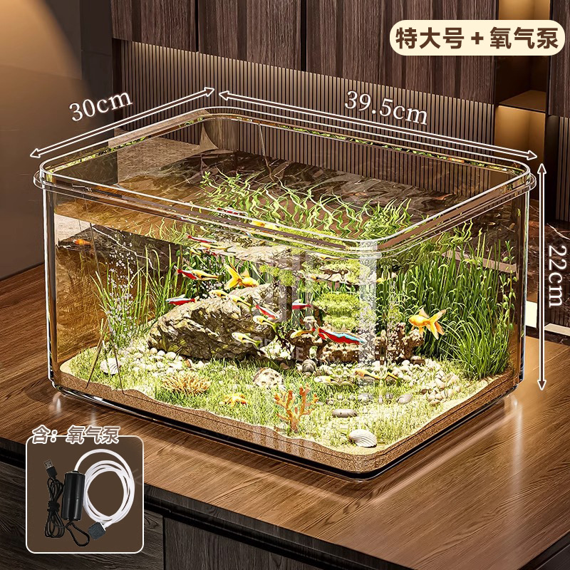 산소 펌프가 있는 거실용 어항, 작은 금붕어와 거북이 사육용, 유리처럼 보이는 플라스틱 소형 탁상 생태 수조스토어 가기