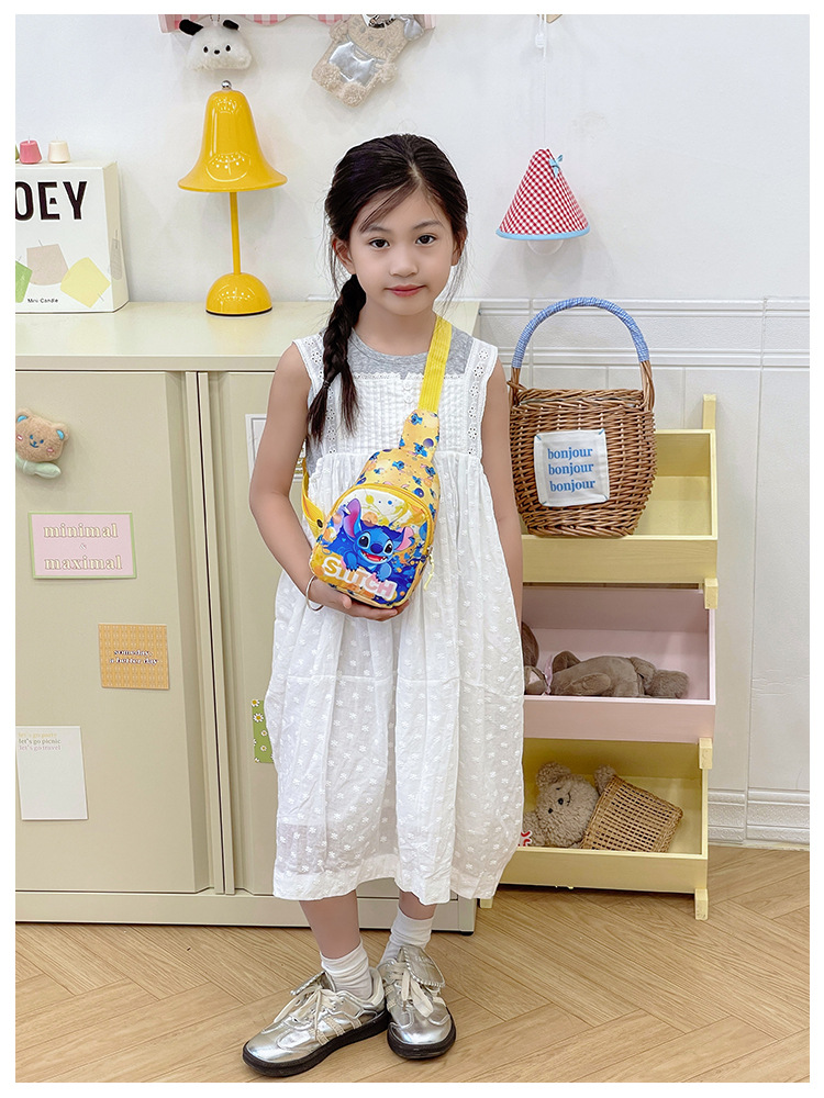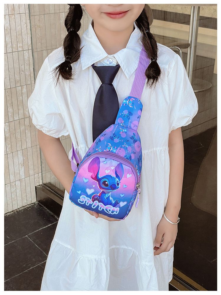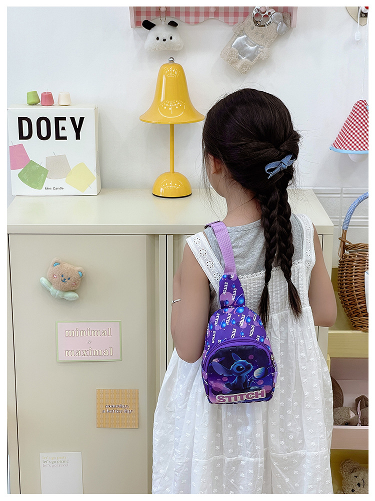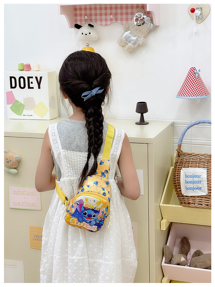 새로운 어린이 가방 귀여운 만화 어린이 유행 스티치 어깨 크로스 바디 가슴 가방 소년과 소녀 패션 동전 지갑스토어 가기