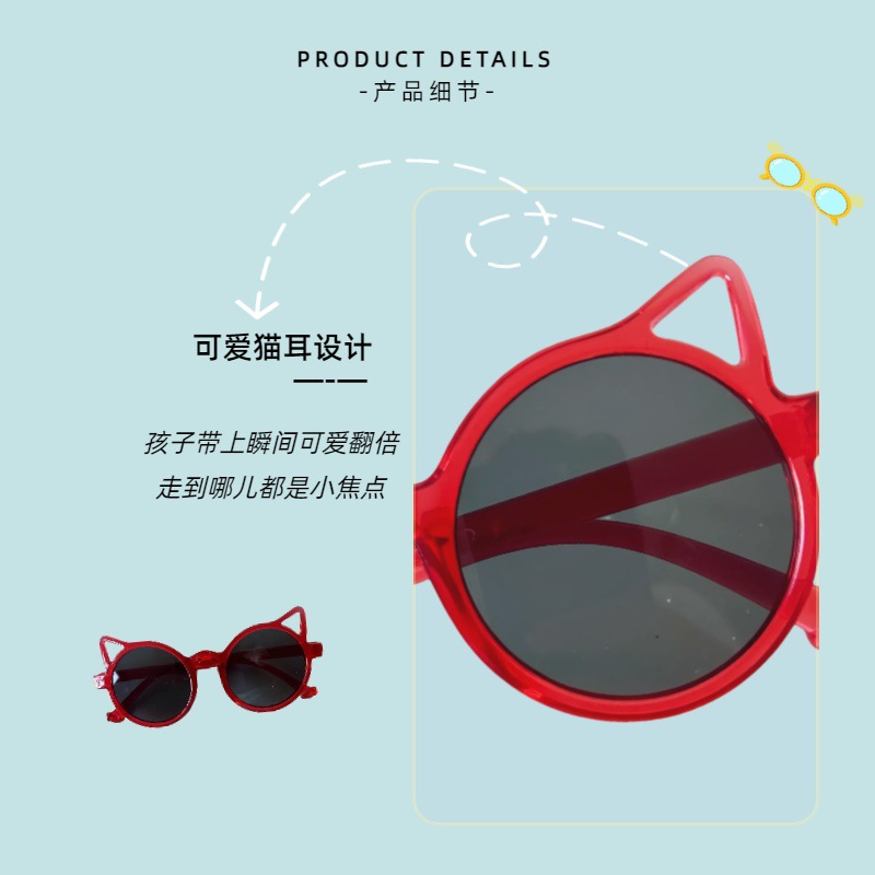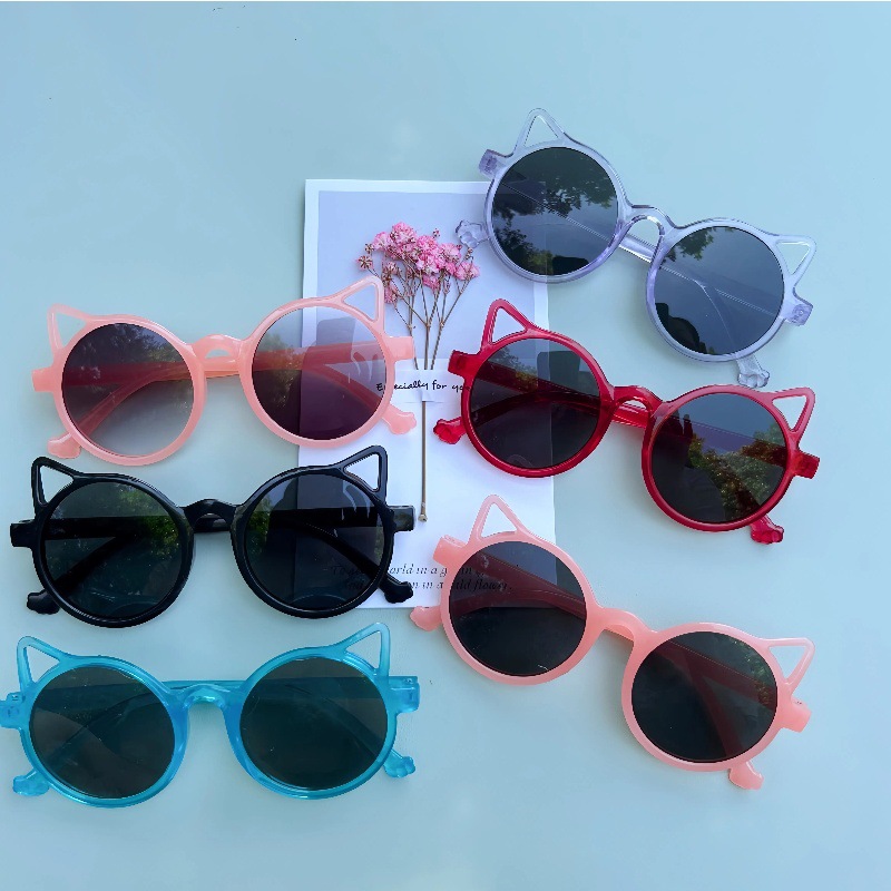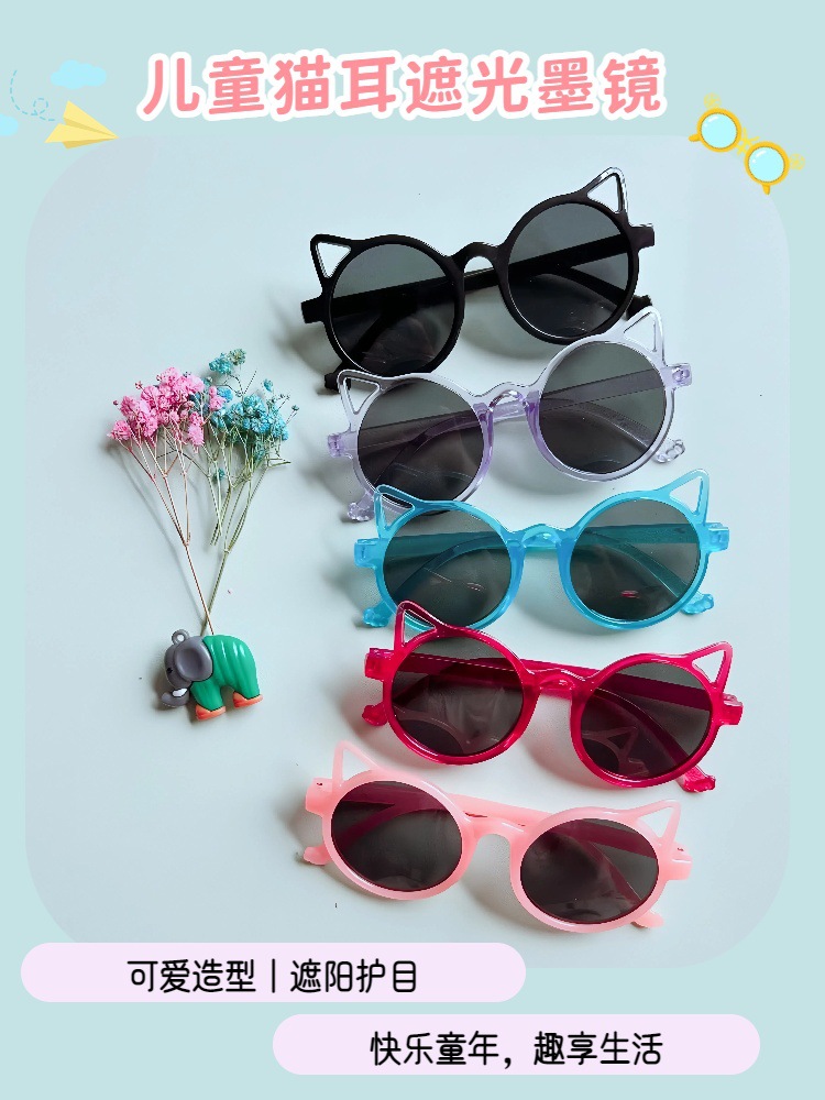 2025 새로운 만화 고양이 귀 소년과 소녀 태양 보호 안경 귀여운 태양 보호 선글라스 아기 사진 패션 소품스토어 가기