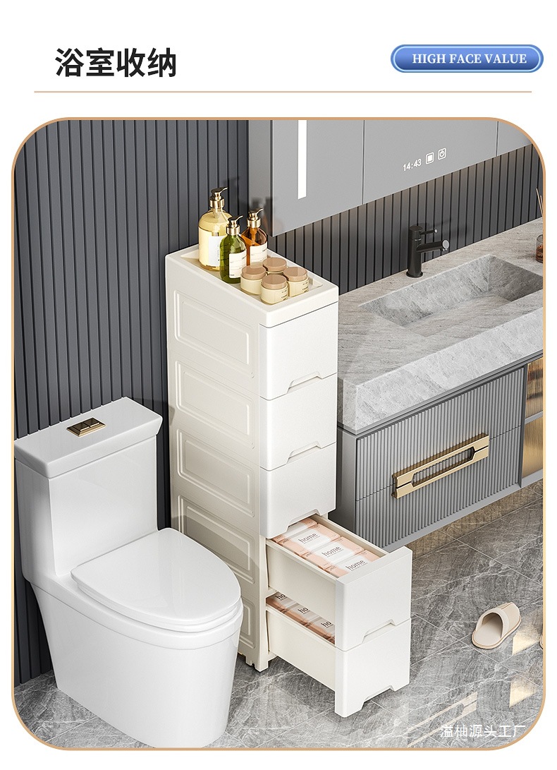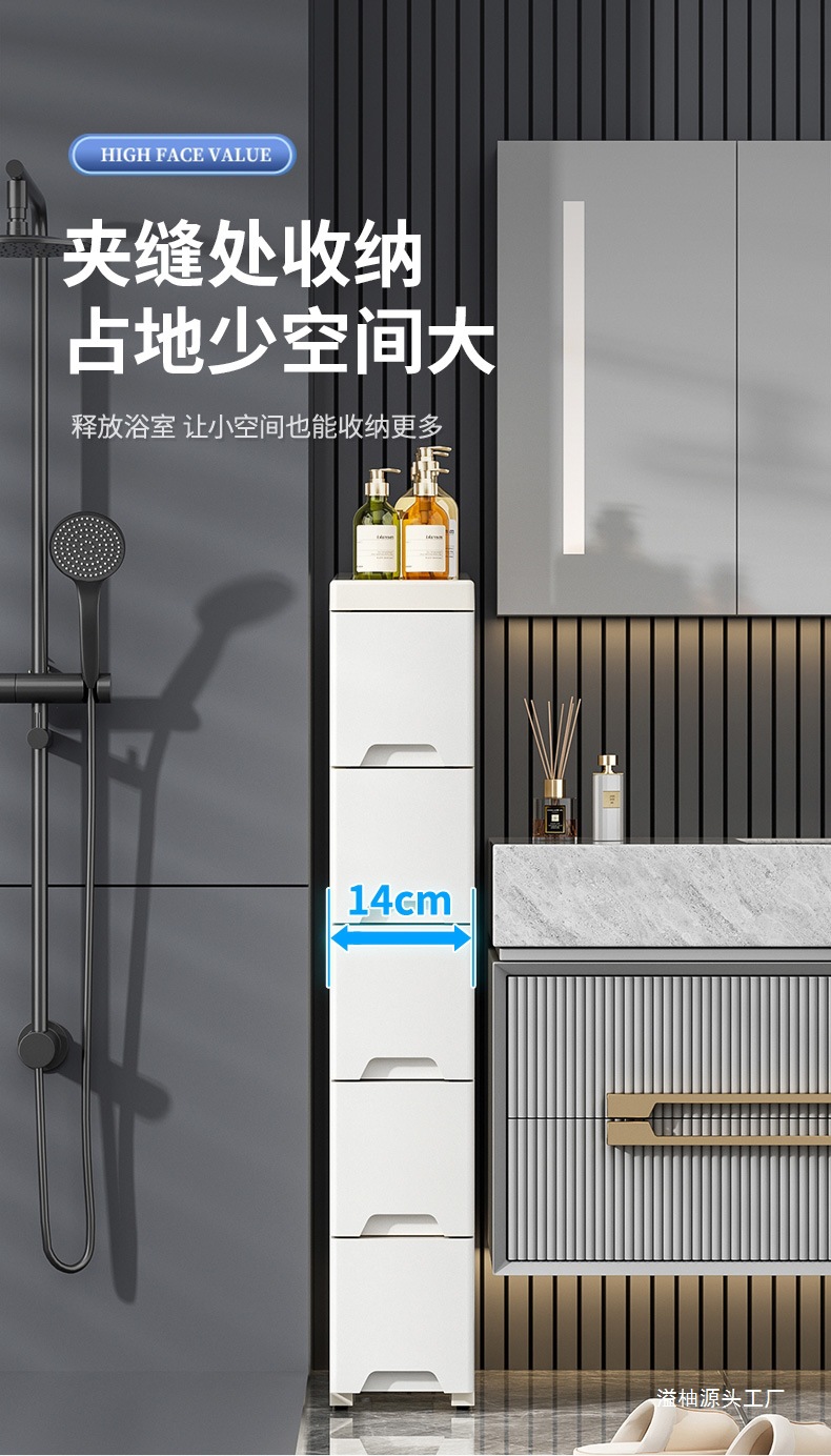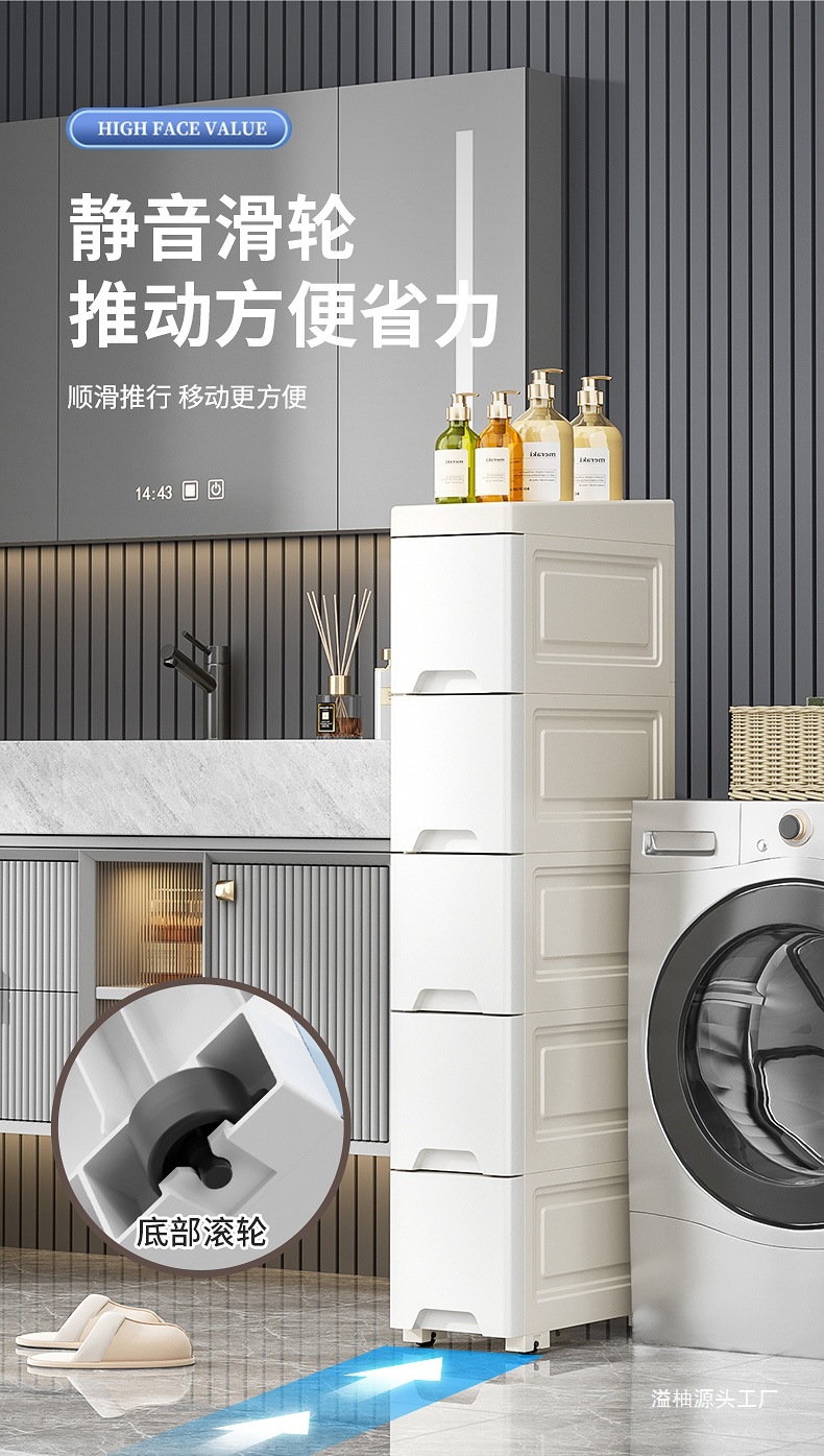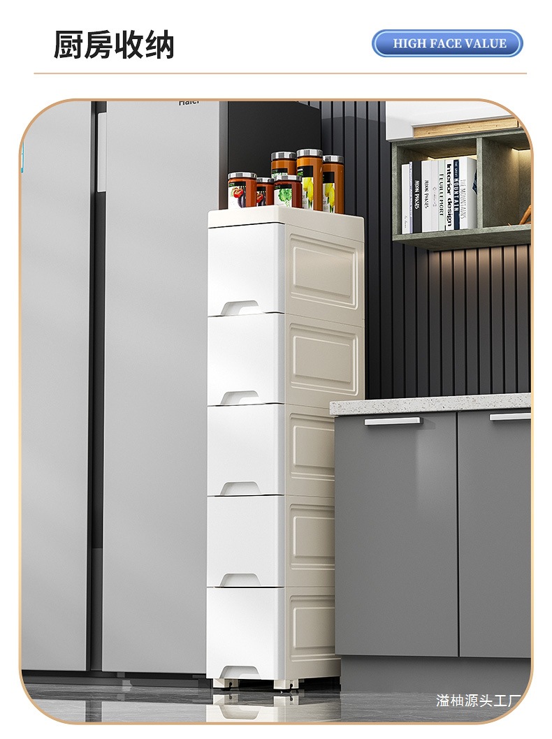 냉장고 옆에 매우 좁은 틈새 캐비닛 주방 틈새 플라스틱 수납 캐비닛 서랍형 욕실 다층 방습 및 방수