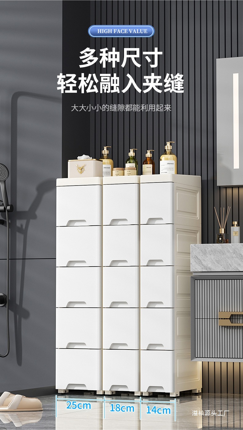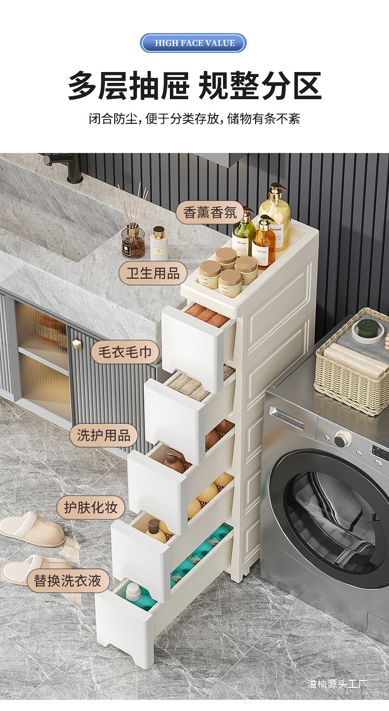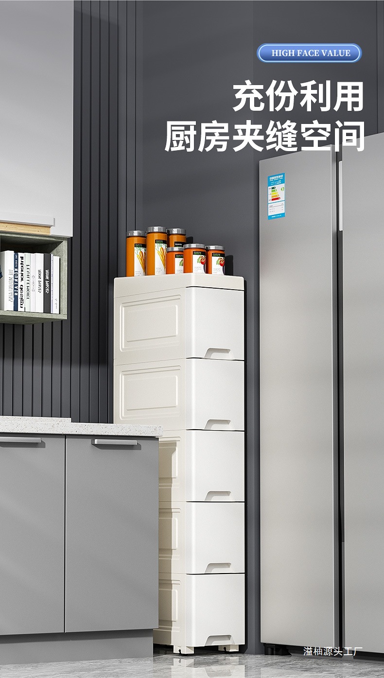 냉장고 옆에 매우 좁은 틈새 캐비닛 주방 틈새 플라스틱 수납 캐비닛 서랍형 욕실 다층 방습 및 방수
