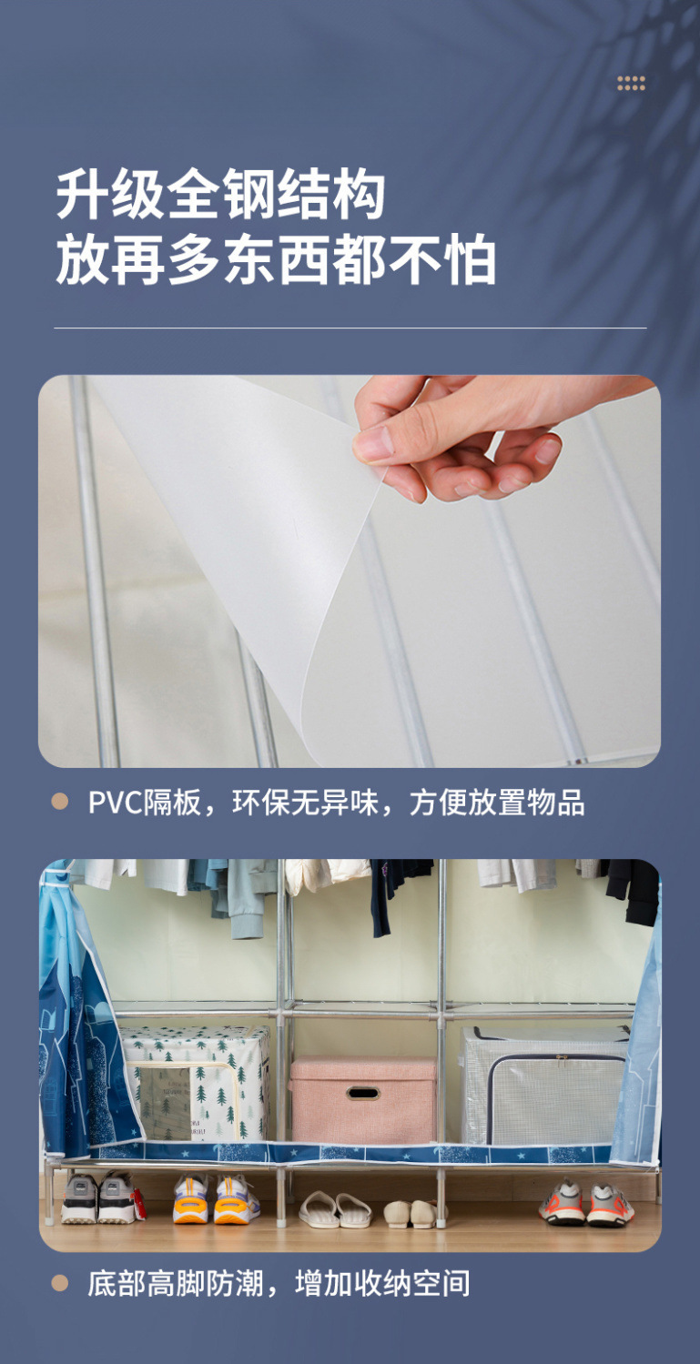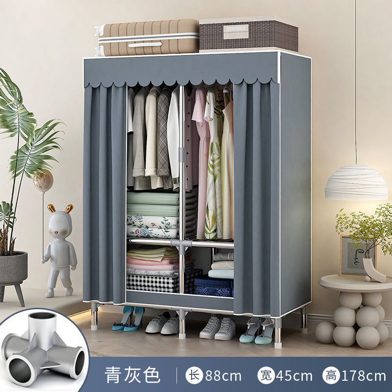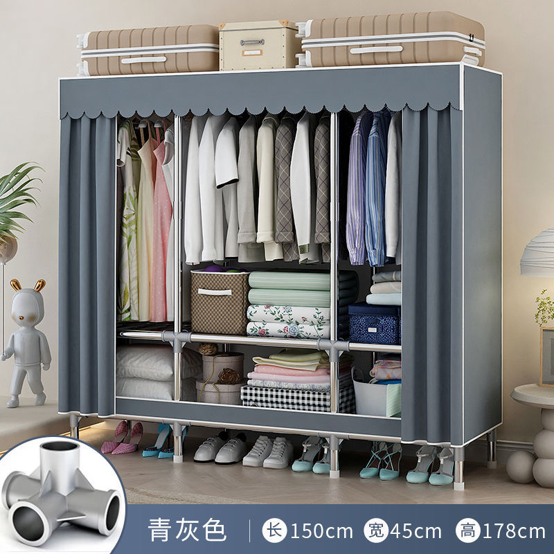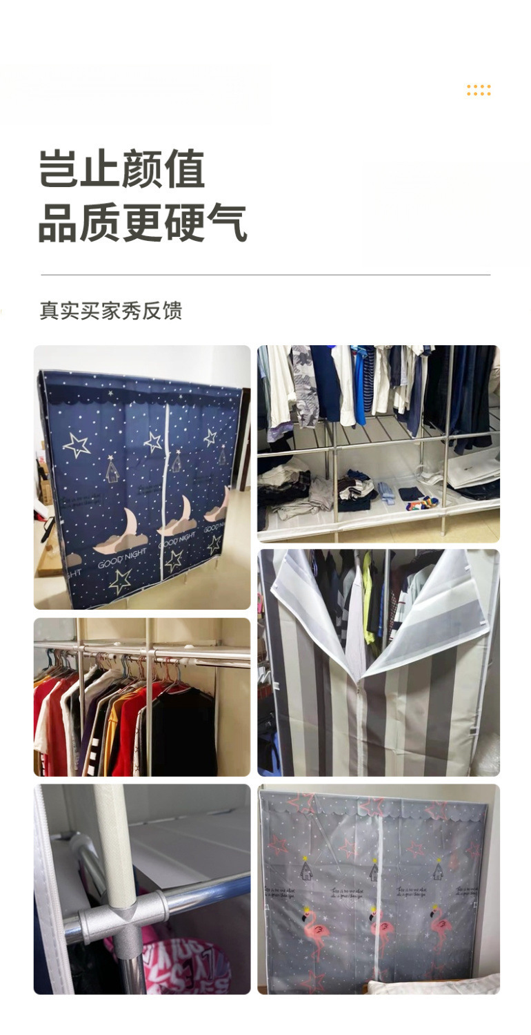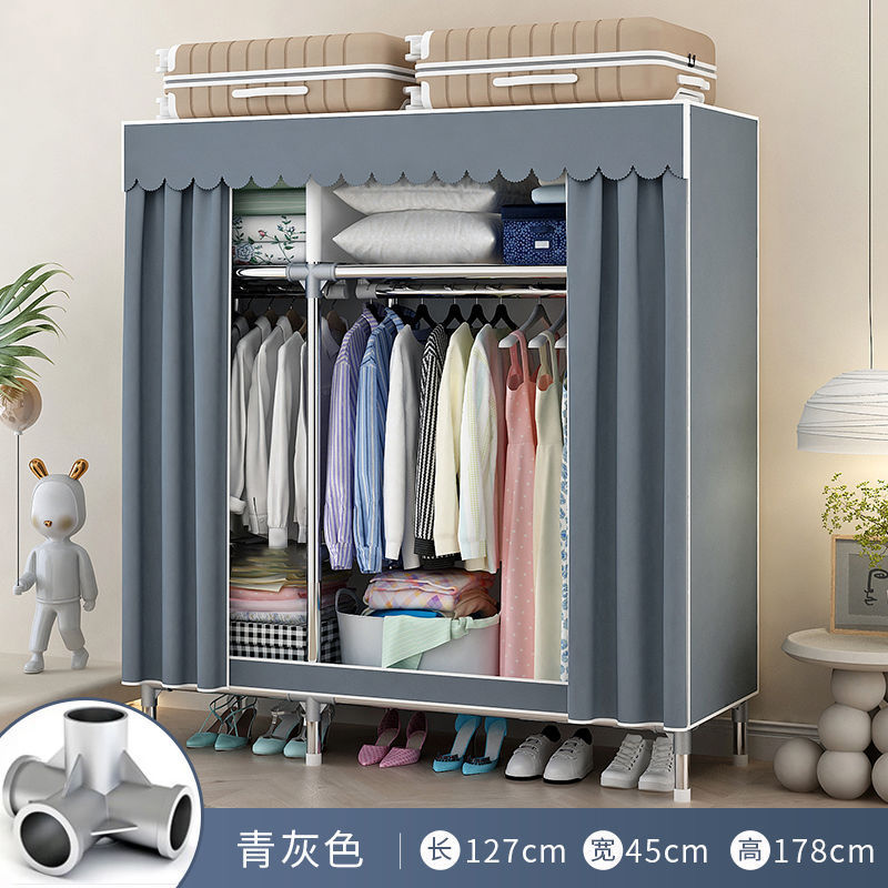 간단한 옷장 홈 침실 조립 천 옷장 임대실 보관 전체 강철 프레임 두꺼운 바닥 옷장 선반스토어 가기