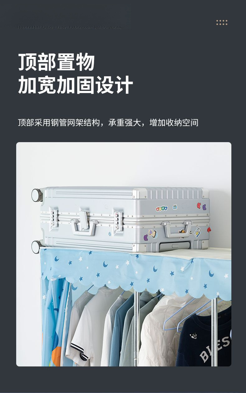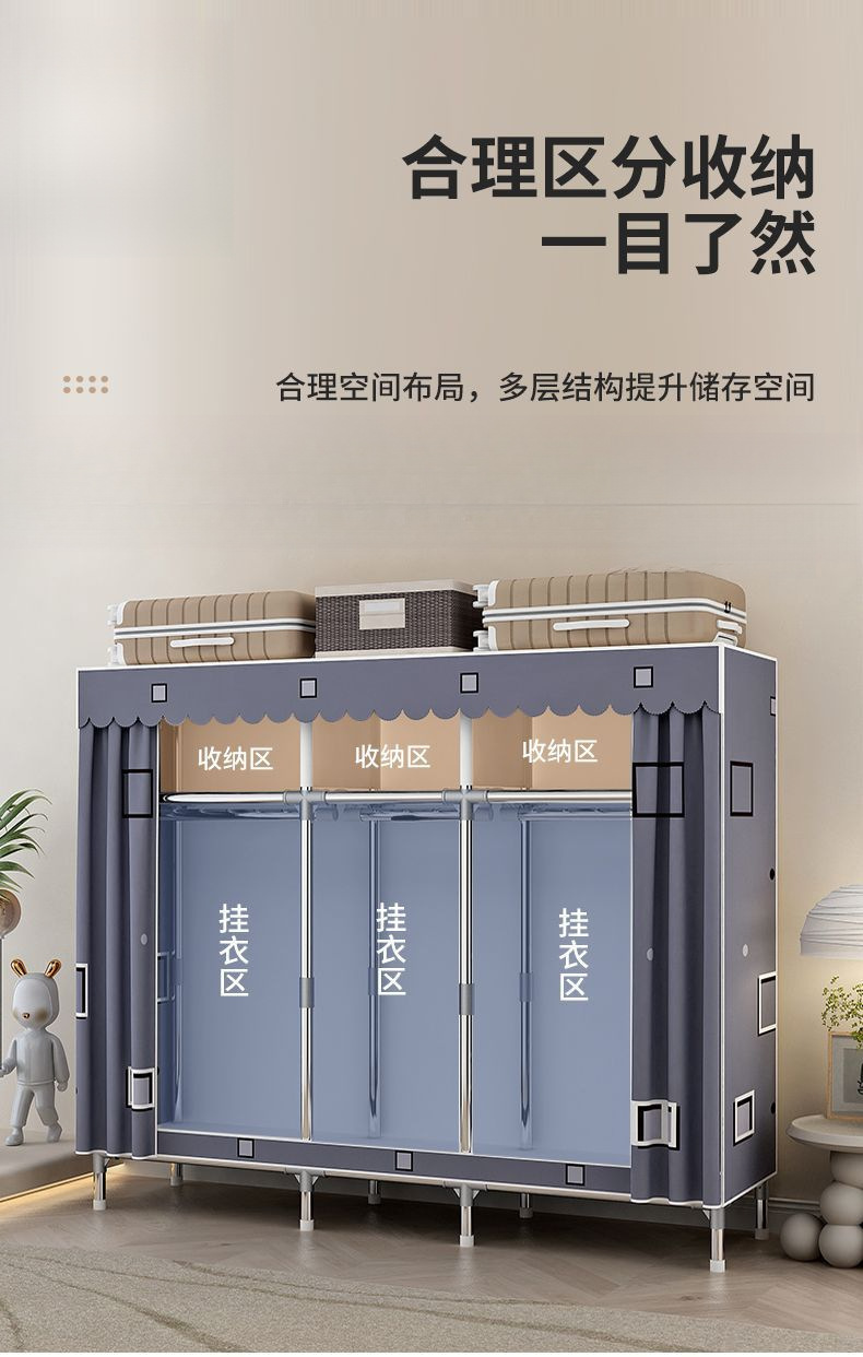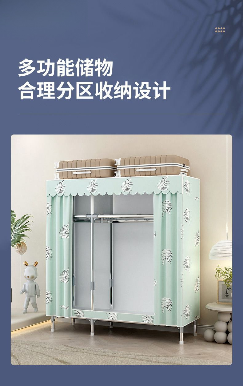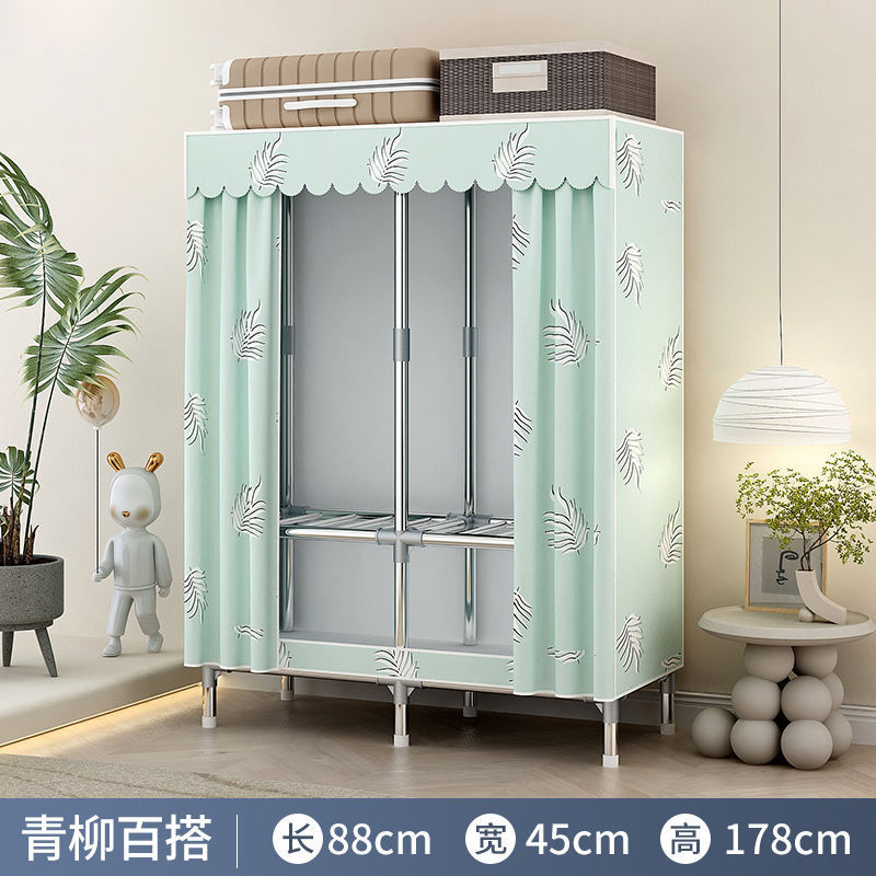 간단한 옷장 홈 침실 조립 천 옷장 임대실 보관 전체 강철 프레임 두꺼운 바닥 옷장 선반스토어 가기