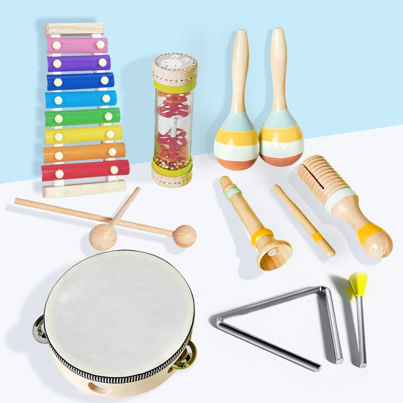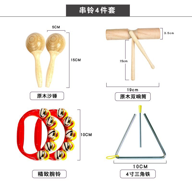유치원 오르프 타악기 어린이 음악 교육 보조 삼각형 철 벨 타악기 샌드 해머 탬버린 더블 타악기