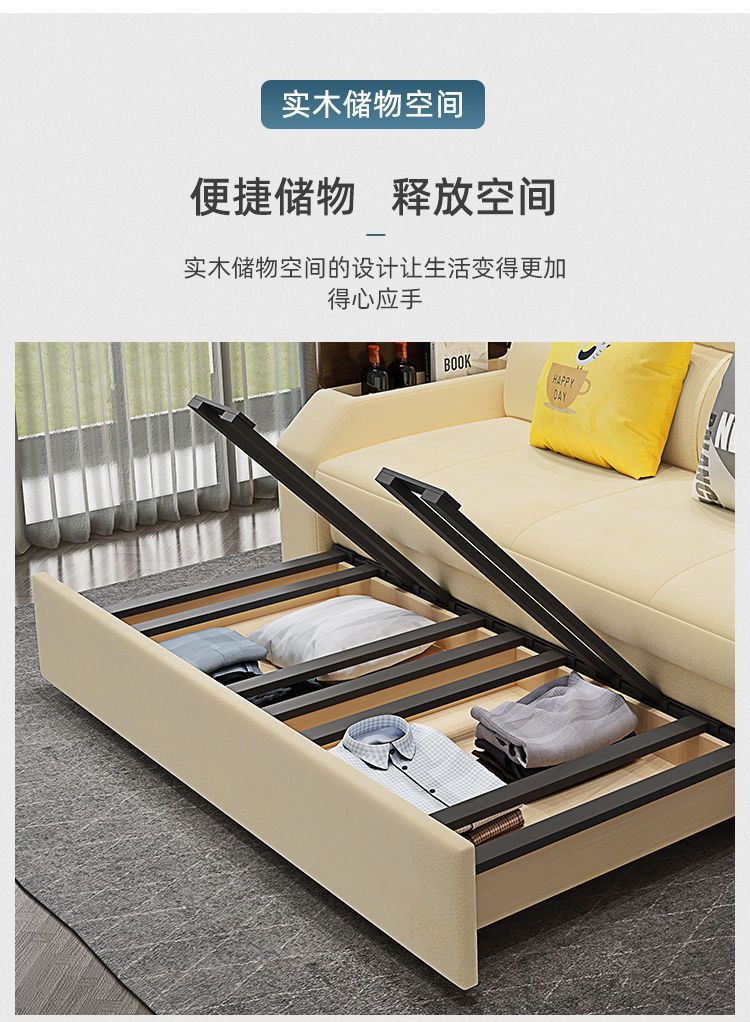 다기능 원목 소파 베드, 접이식 이중 목적 수납 공간, 소형 거실, 분리 및 세탁 가능한 싱글 및 더블 특별 가격 이중 목적 침대