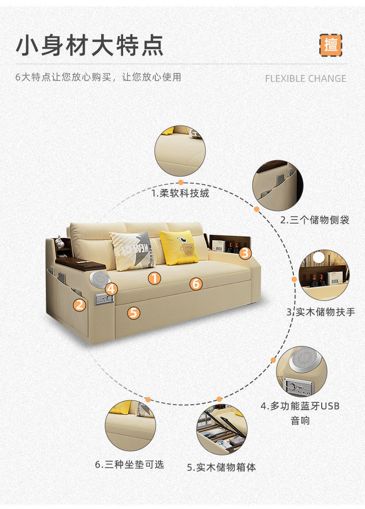 다기능 원목 소파 베드, 접이식 이중 목적 수납 공간, 소형 거실, 분리 및 세탁 가능한 싱글 및 더블 특별 가격 이중 목적 침대스토어 가기