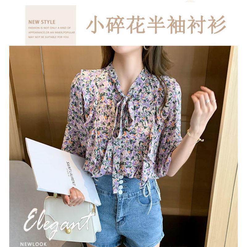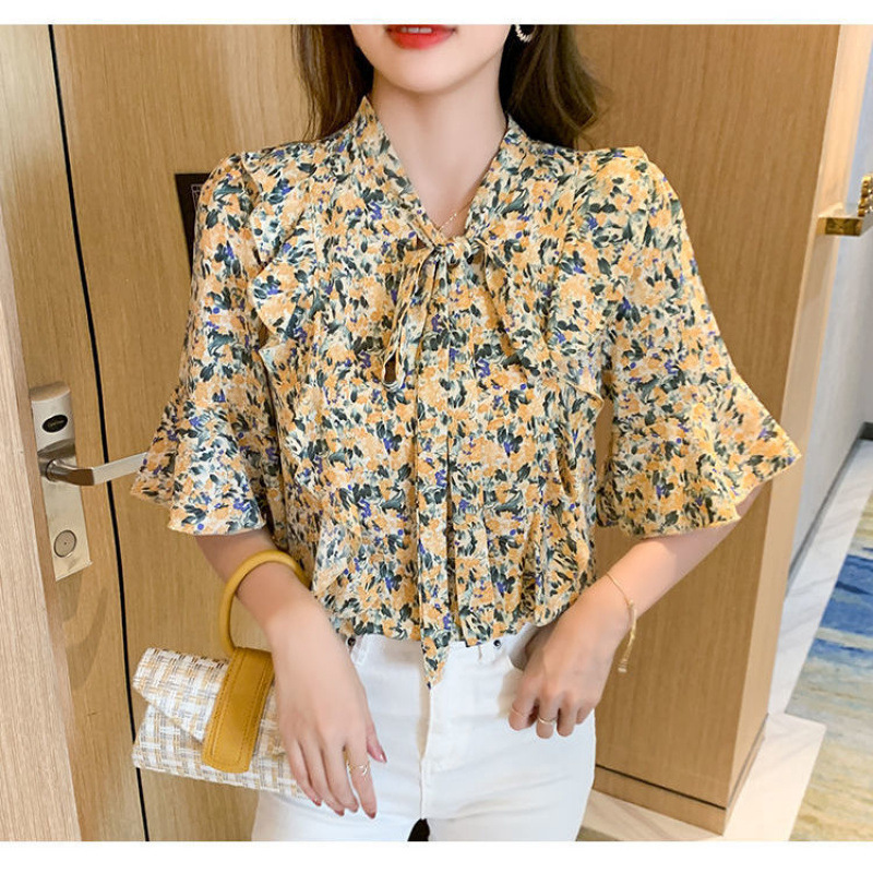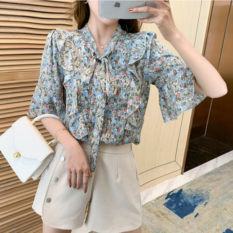2025 봄 쉬폰 셔츠 여성 긴팔 리본 프릴 프린트 보우 셔츠 탑 트렌디 다용도 슬리밍 새로운 스타일스토어 가기