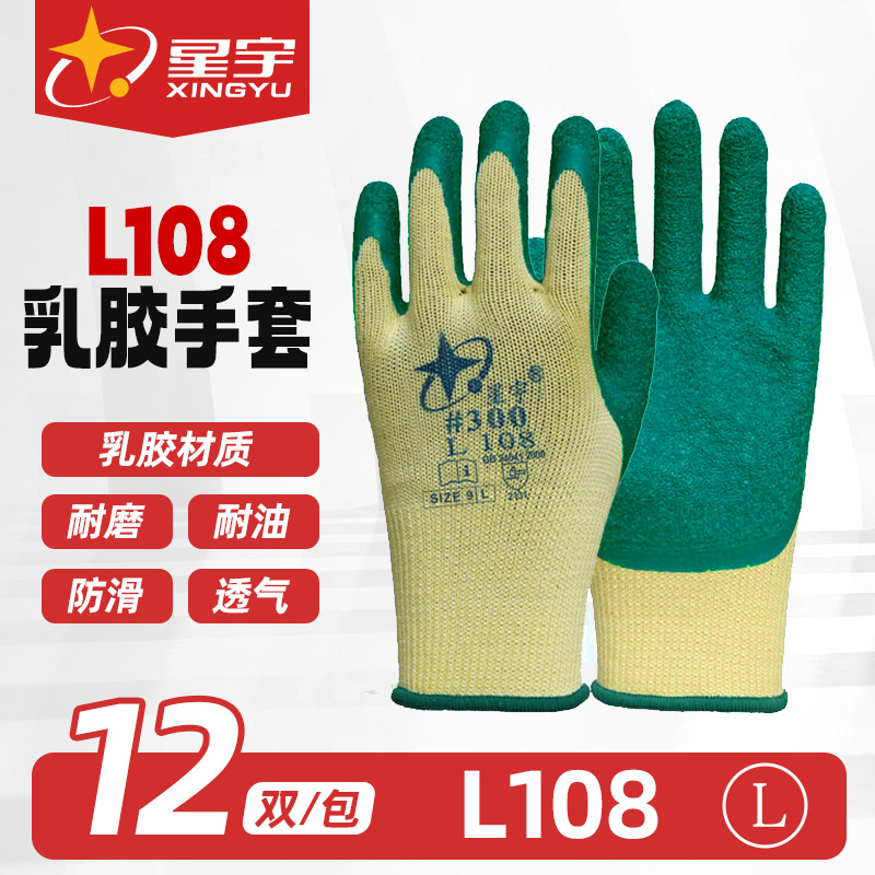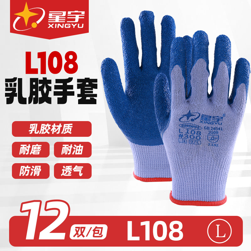Xingyu L108 라텍스 주름 장갑 내마모성 및 통기성 건설 현장 운반 노동 보호 장갑 점착제 미끄럼 방지 원사 장갑스토어 가기