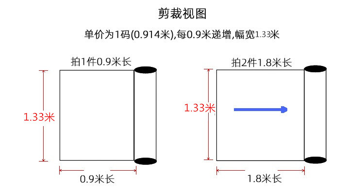价格:拍1件1码(0.914米) 拍2件1.8米 拍3件2.7米 幅宽1.35米 多买是整块的
