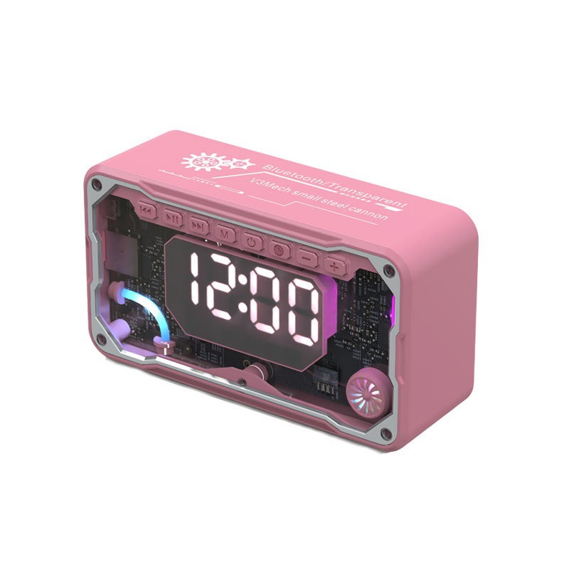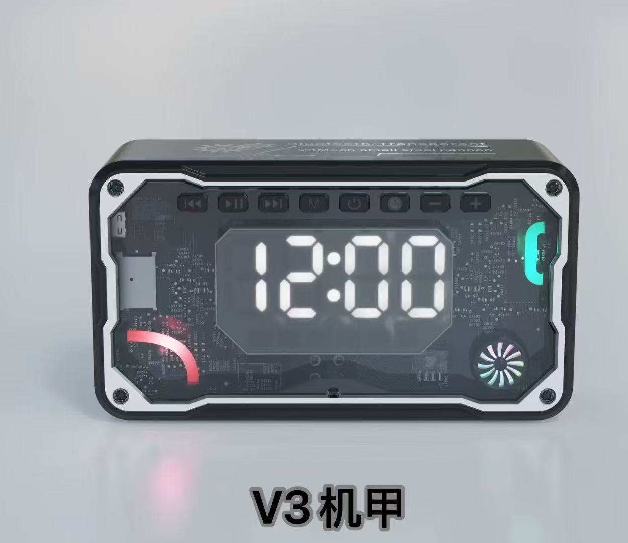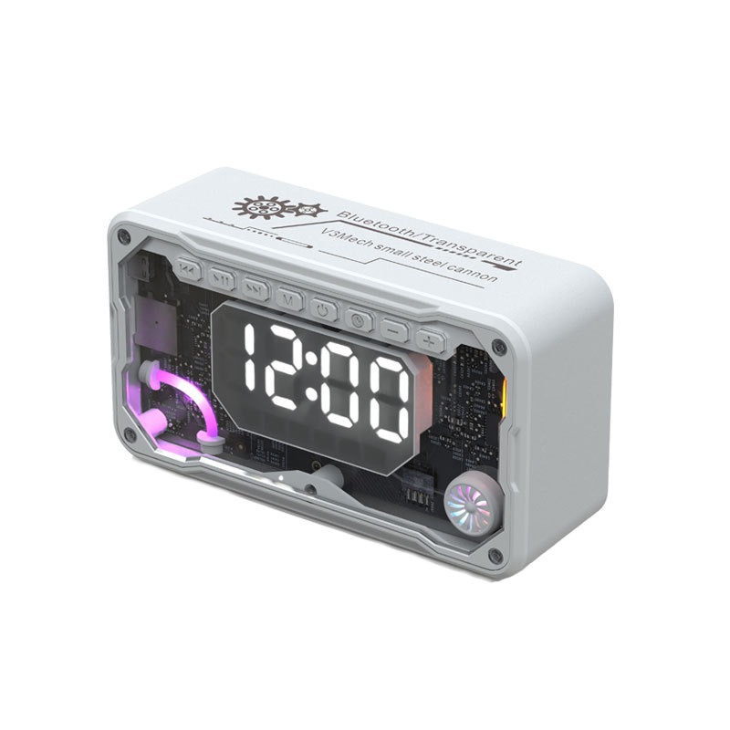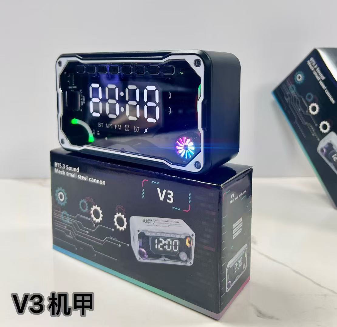 국경 간 인기 v3 알람 시계 블루투스 스피커 투명 메카 소형 강철 총 휴대용 데스크탑 카드 선물 소형 스피커스토어 가기