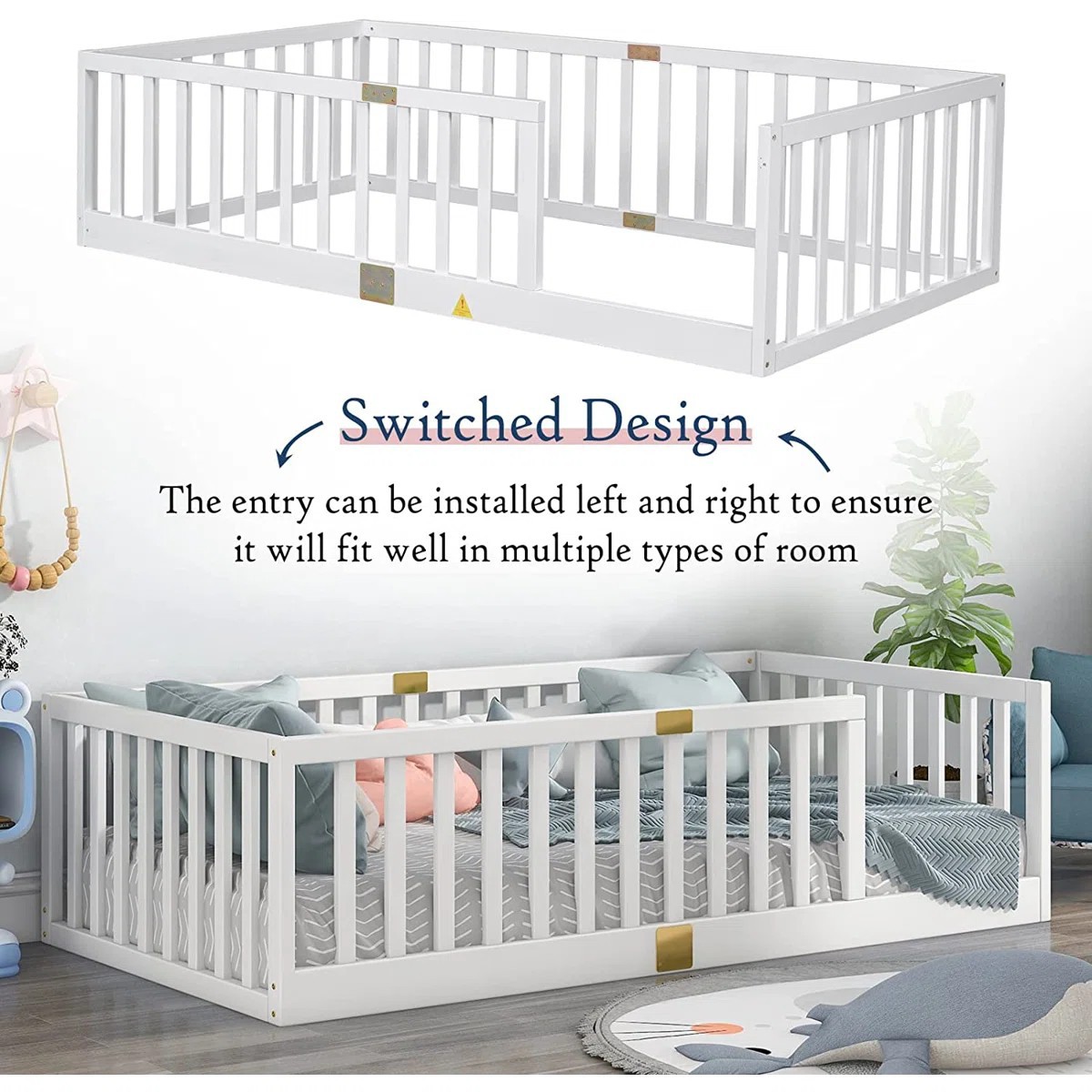 북유럽 로그 스타일 1.5m 어린이 침대 소년 다기능 울타리 드래그 침대 가드 레일 플랫폼 침대 싱글 침대