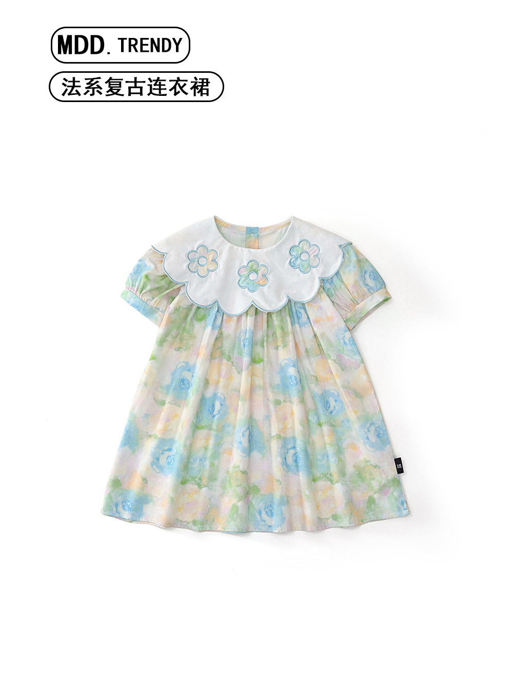 MDD 소녀 드레스 2025 새로운 유화 스타일 버블 반팔 자수 인형 칼라 유행 어린이 공주 드레스스토어 가기