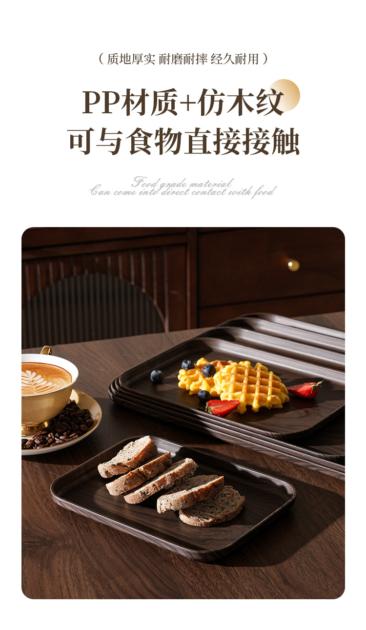국경 간 모조 나뭇결 차 트레이, 다중 사양 검정색 트레이, 과일 스낵 디너 트레이, 레스토랑 및 호텔 미끄럼 방지 서빙 트레이스토어 가기