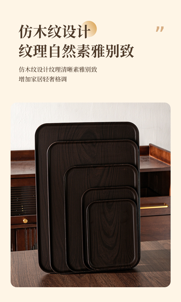 국경 간 모조 나뭇결 차 트레이, 다중 사양 검정색 트레이, 과일 스낵 디너 트레이, 레스토랑 및 호텔 미끄럼 방지 서빙 트레이