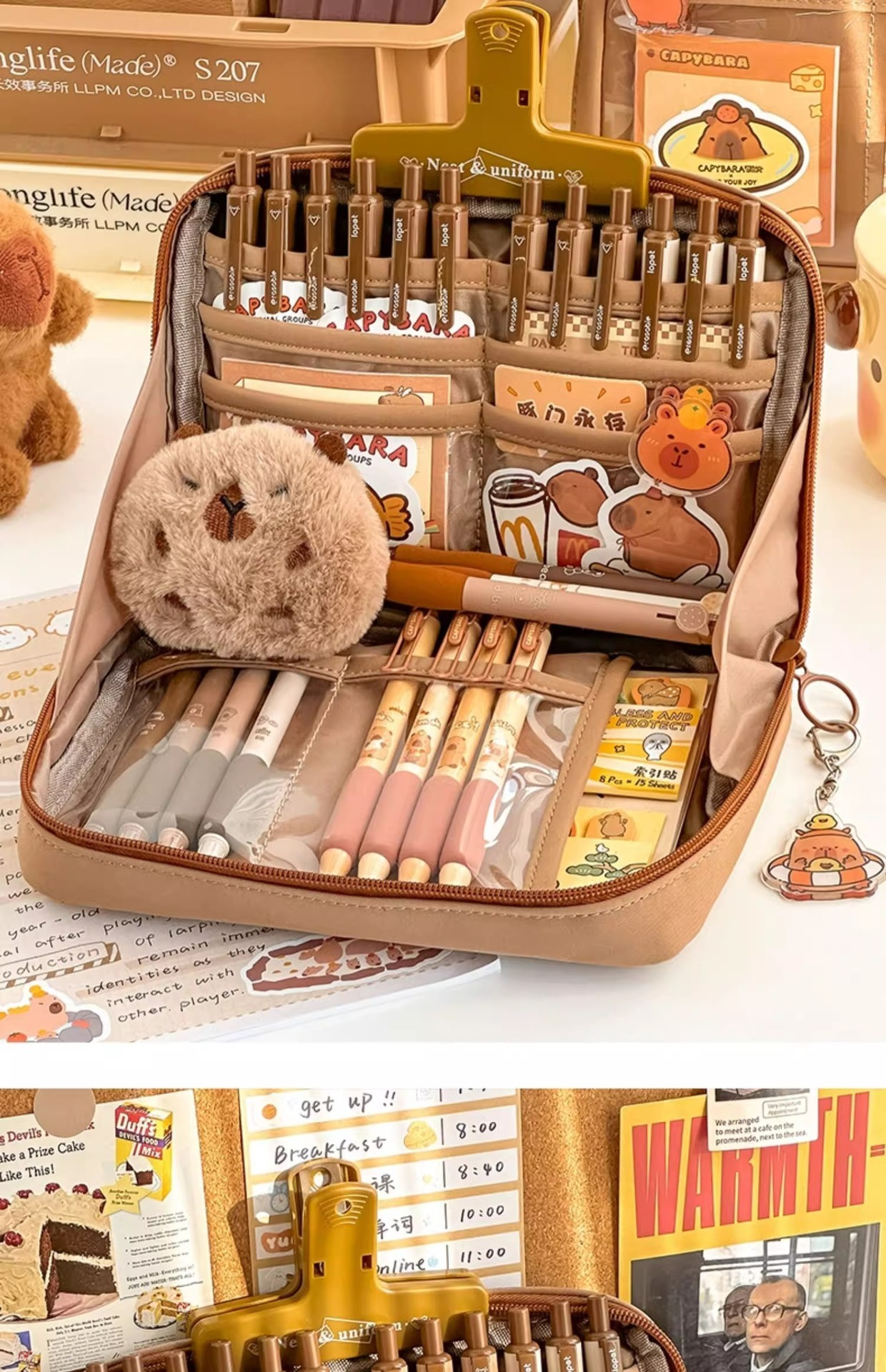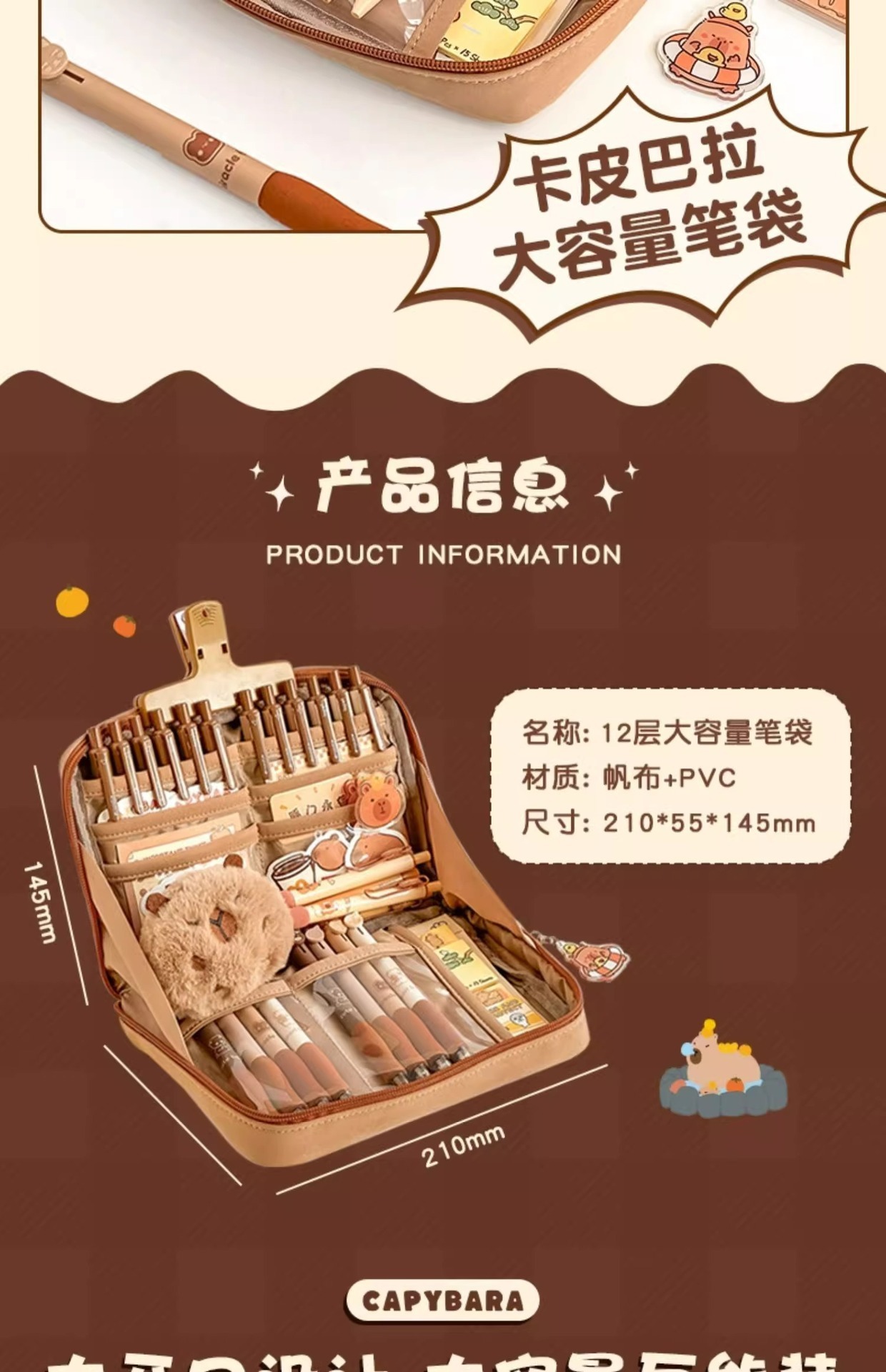 초등학생을 위한 12단 카피바라 필통, 중학생을 위한 고급스럽고 대용량 필통, 대형 오픈 필통