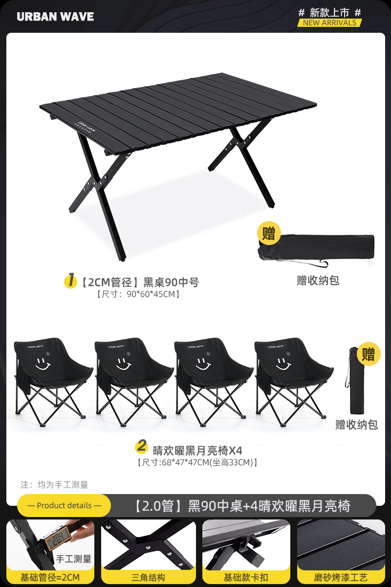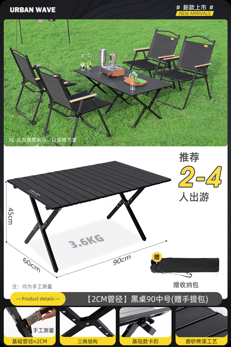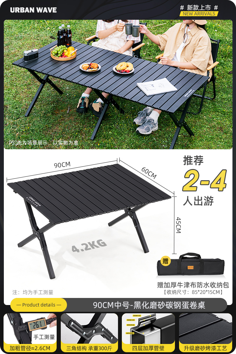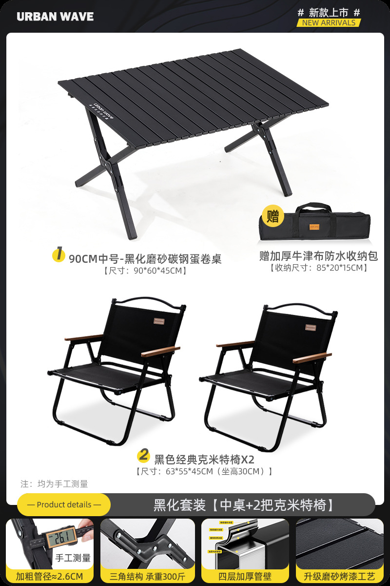 • /【2.6粗管】黑化碳钢合金90中桌(赠手提包)/