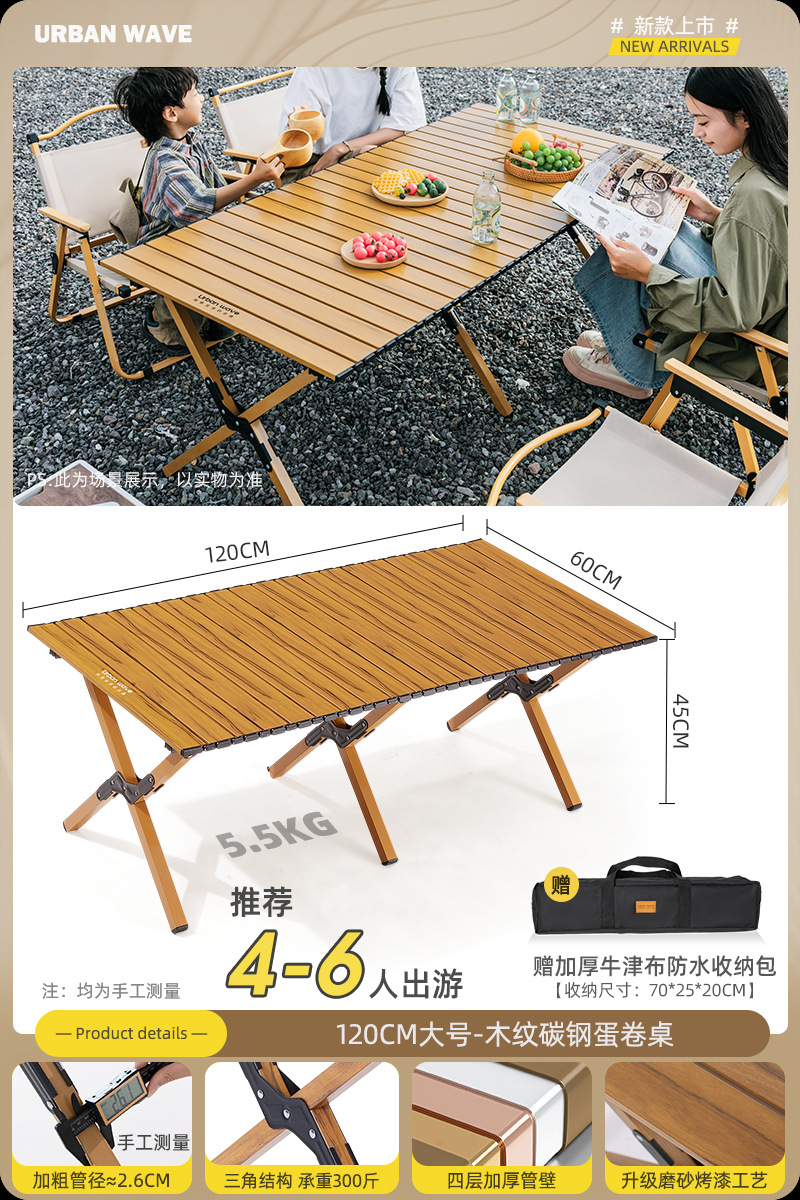 • /【2.6粗管】木纹碳钢合金120大桌(赠手提包)/