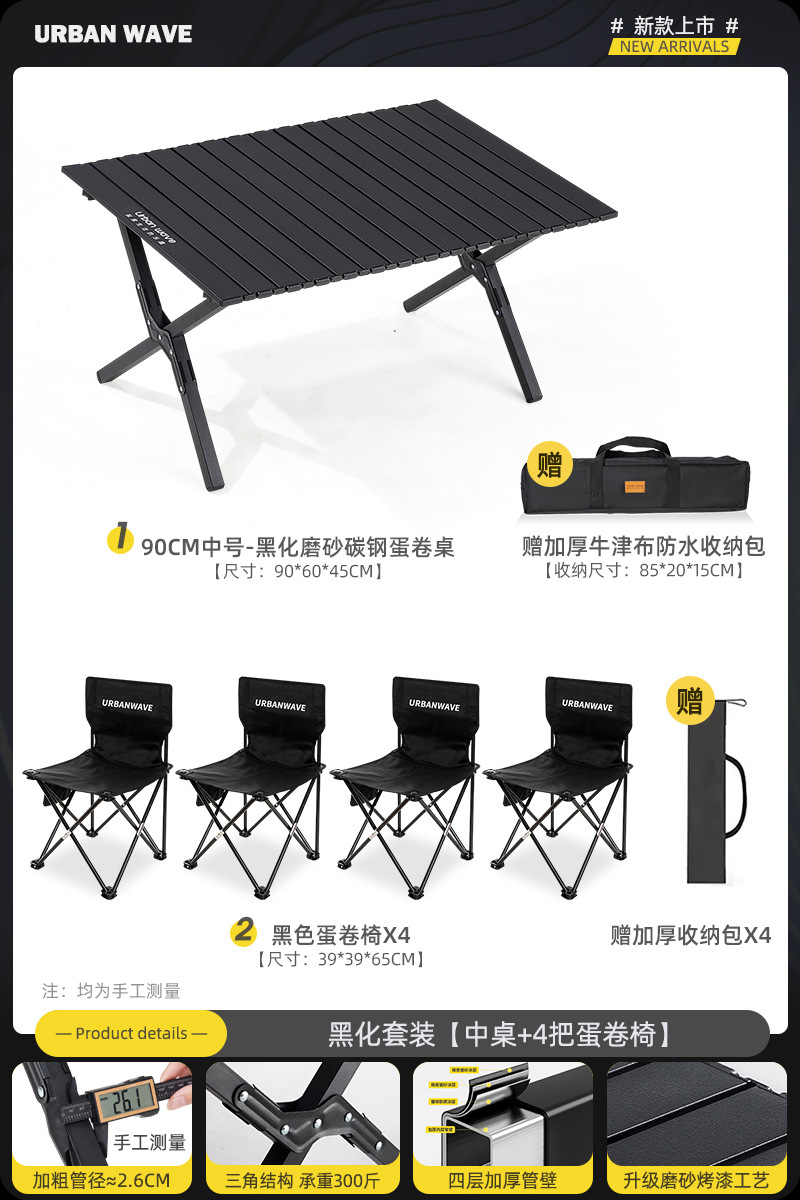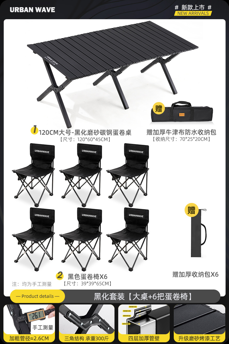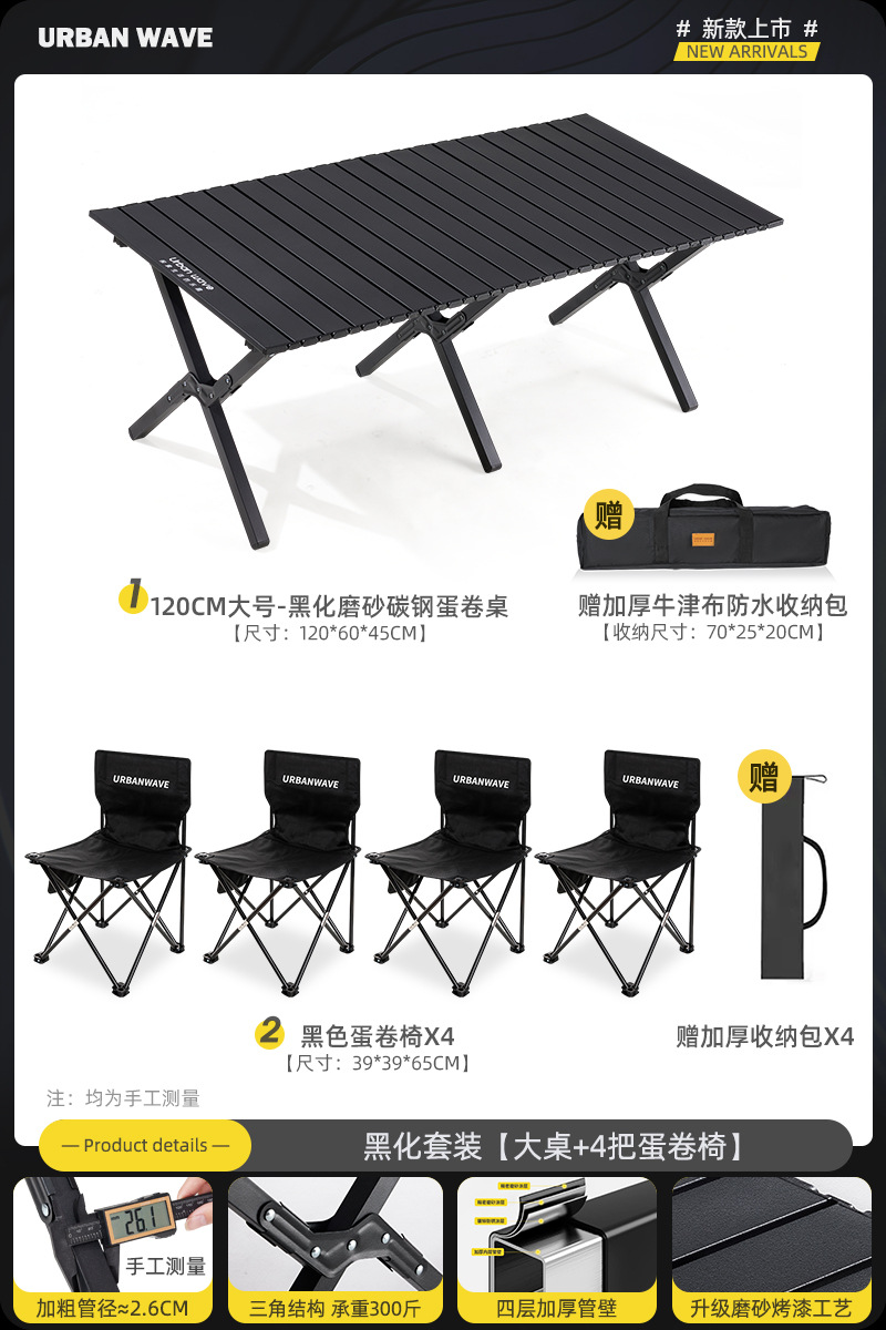 • /【2.6粗管】黑化套装【中桌+4蛋卷椅】/