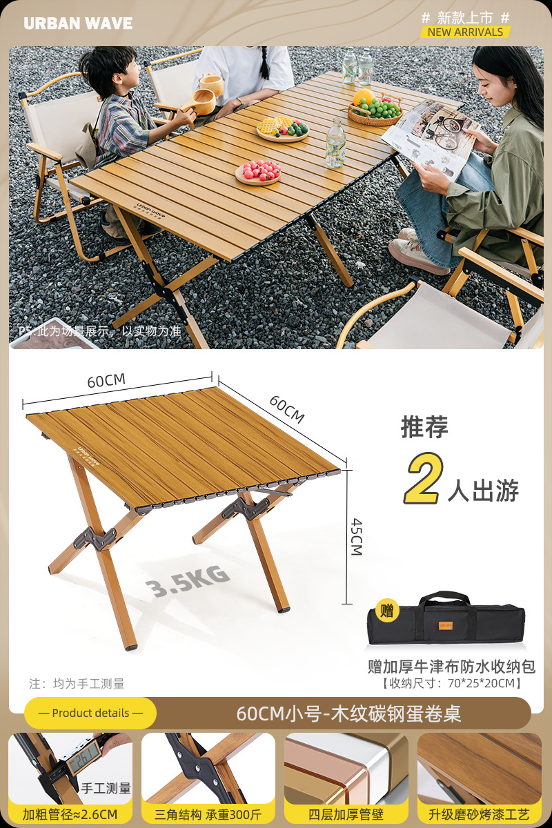 • /【2.6粗管】木纹碳钢合金60小桌(赠手提包)/