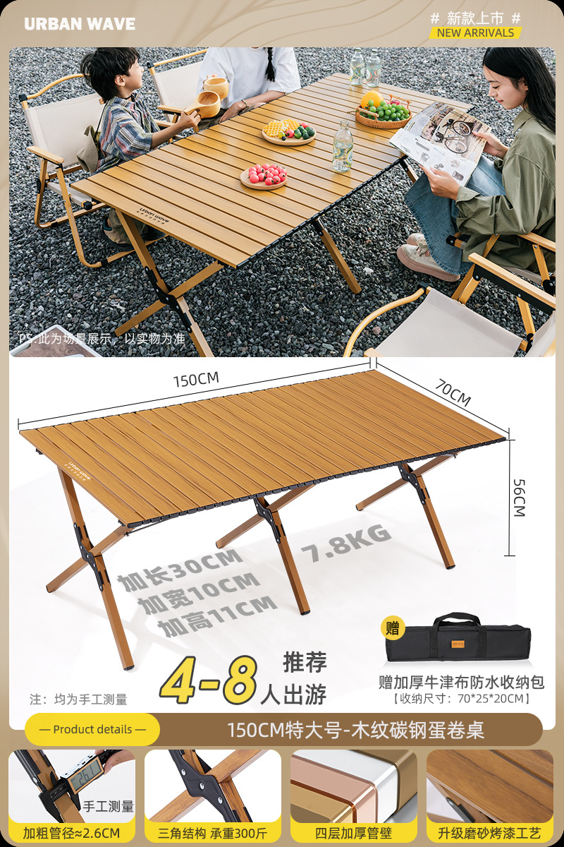 • /【2.6粗管】木纹碳钢合金150特大桌(赠手提包)/