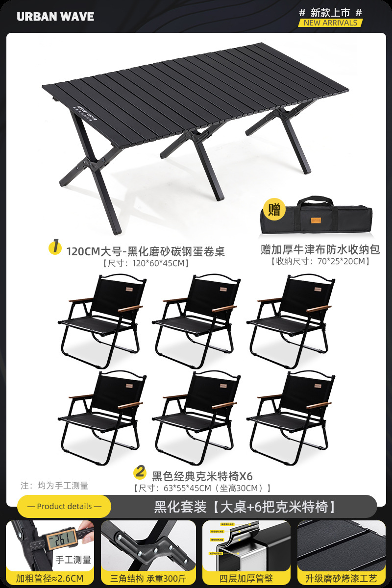 • /【2.6粗管】黑化套装【大桌+6蛋卷椅】/