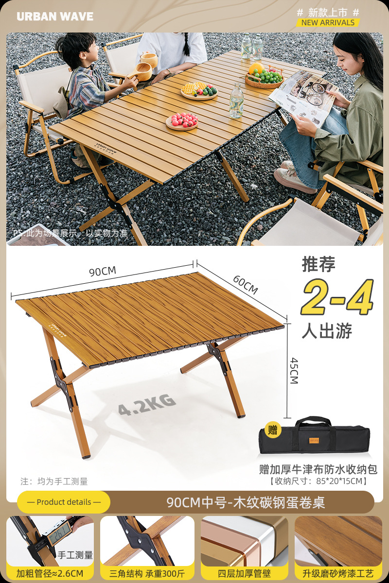 • /【2.6粗管】木纹碳钢合金90中桌(赠手提包)/